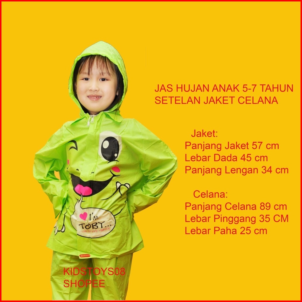 Jas Hujan Anak Perempuan 5-7 Tahun Mantel Hujan Kido Hijau Anak