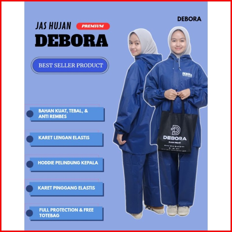 Jas Hujan Setelan Pria Wanita Dewasa Bahan Kuat Tebal Elastik Anti Rembes By Debora