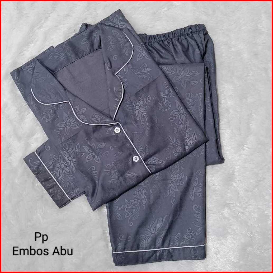 Jnv Piyama Pp Wanita Motif Satin Embos - Baju Tidur Lengan Panjang - Bahan Satin Embos