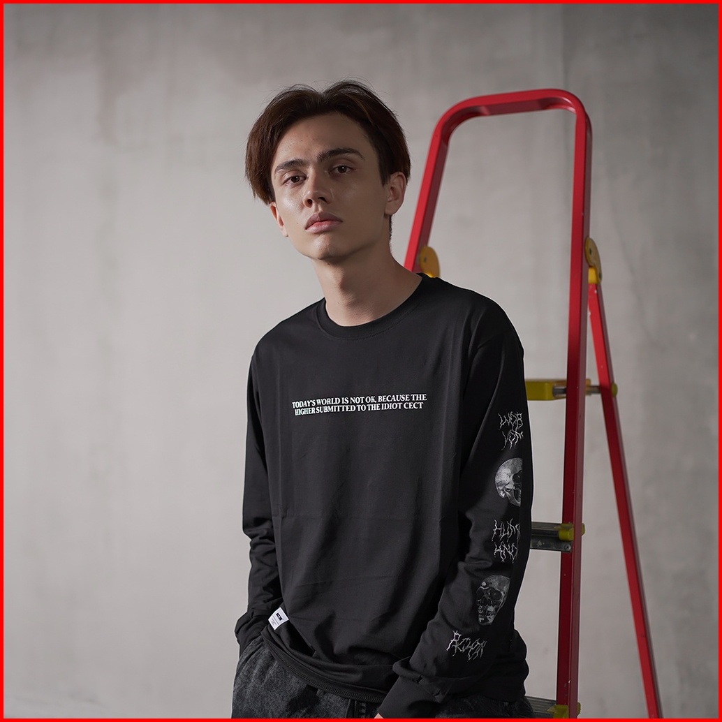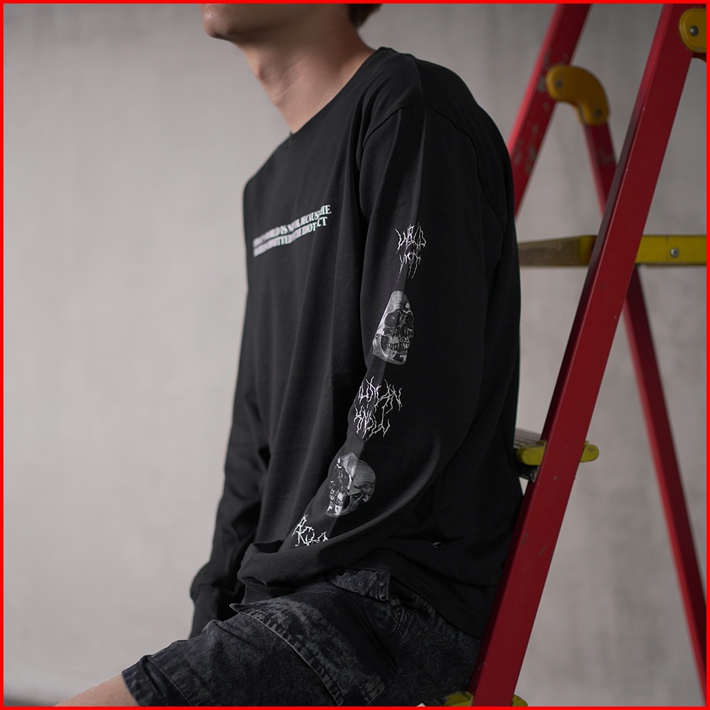 Rockzoneinc. Longsleeve Headbone - Kaos Lengan Panjang Hitam - Pria Wanita Unisex