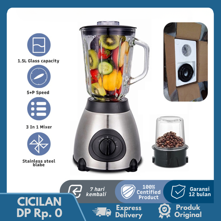 BLENDER JUICER Blender Kaca Grinder 1.5L 6 Pisau Juicer Elektrik 2in1 cangkir ganda serbaguna Blander Low Watt M
