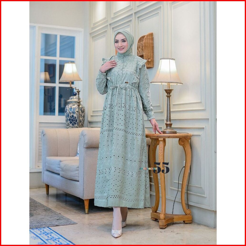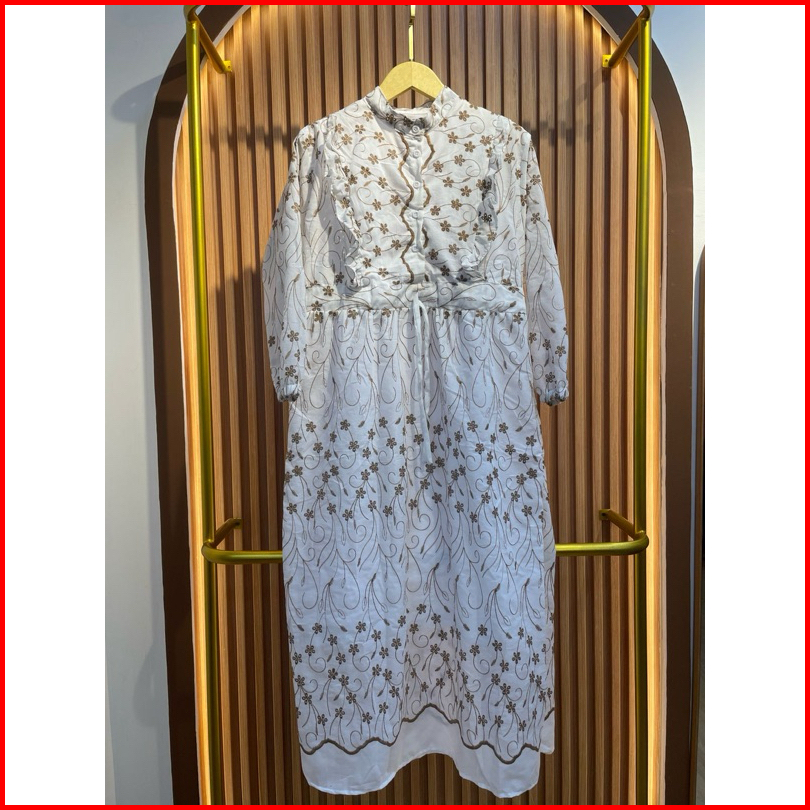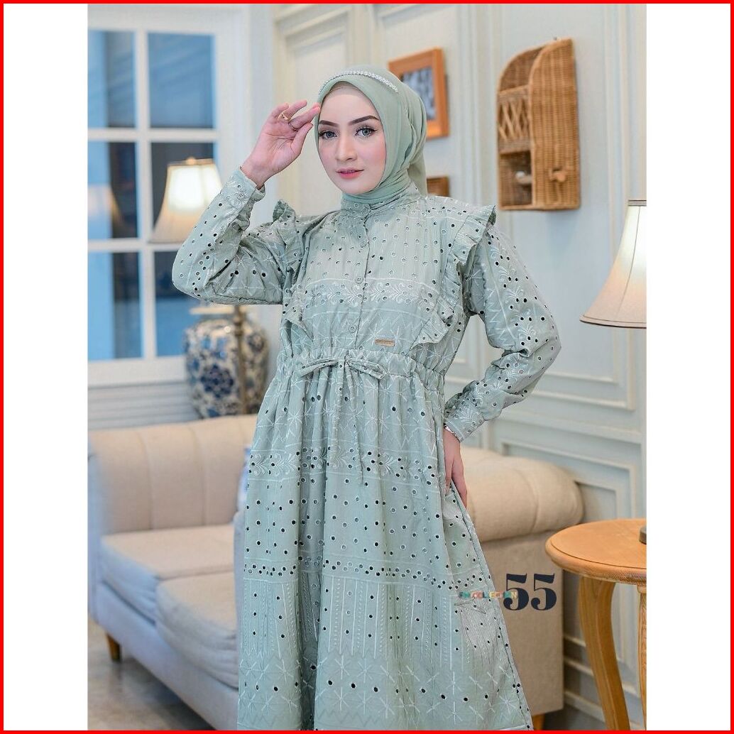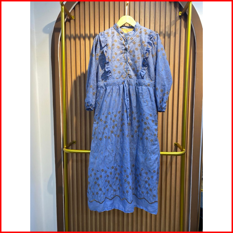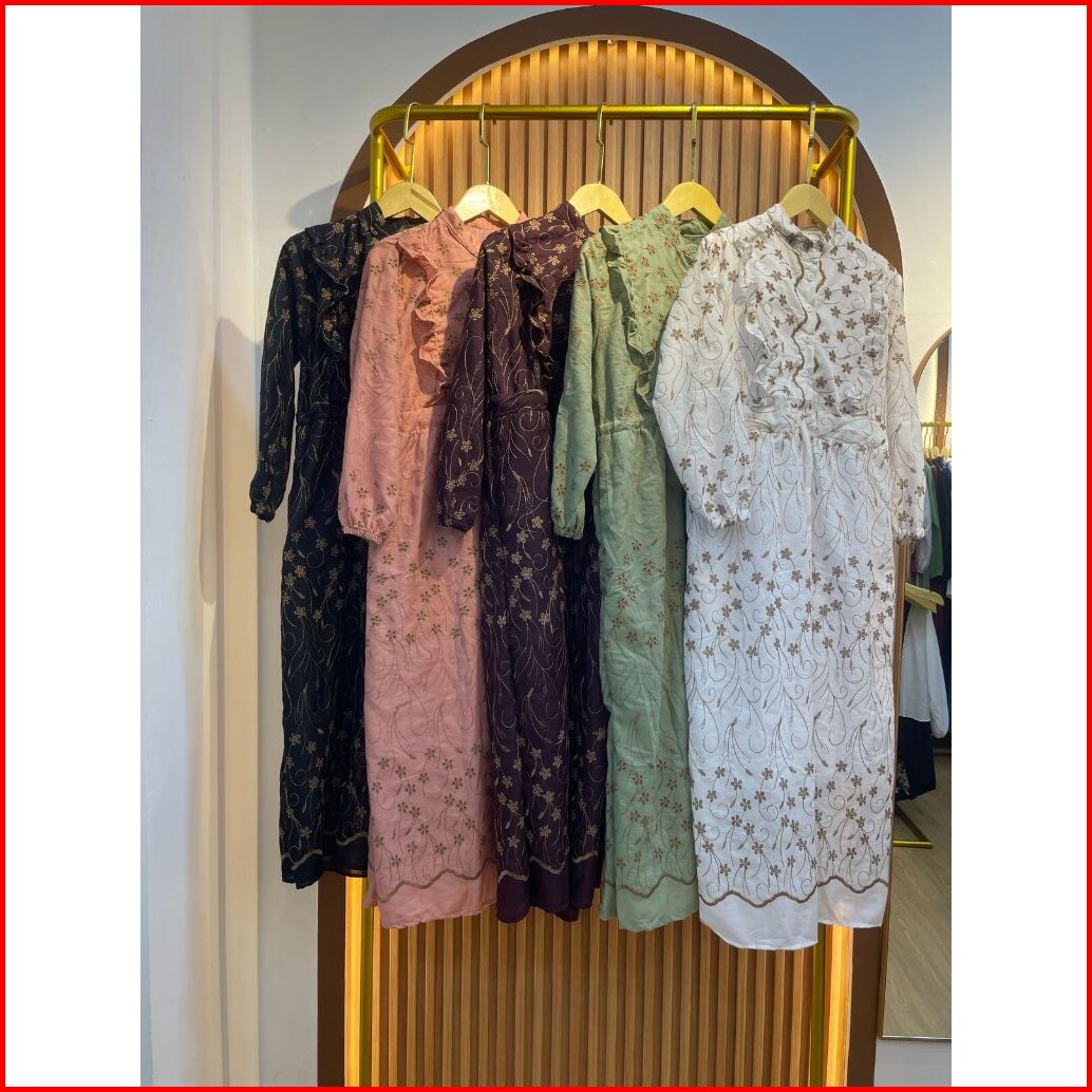 Raya Midi Dress Katun Bordir Furring Midi Katbol Puring Midi Dress Wanita Muslimah Midi Dress Polos Bordir Midi Lebaran