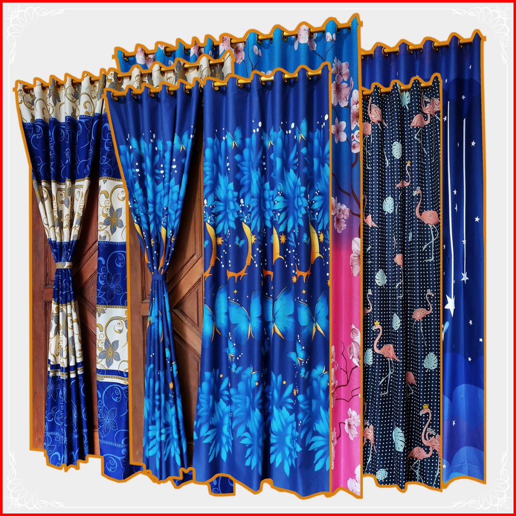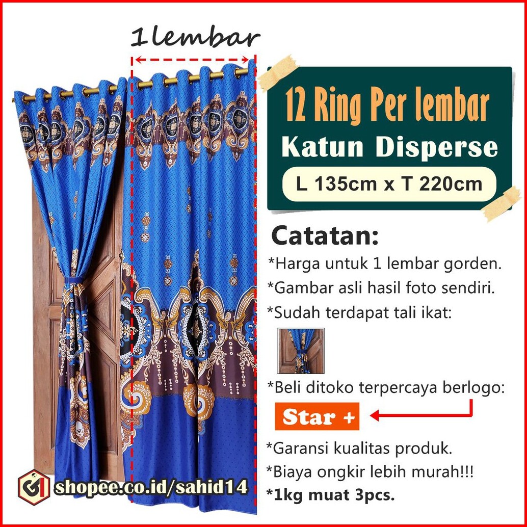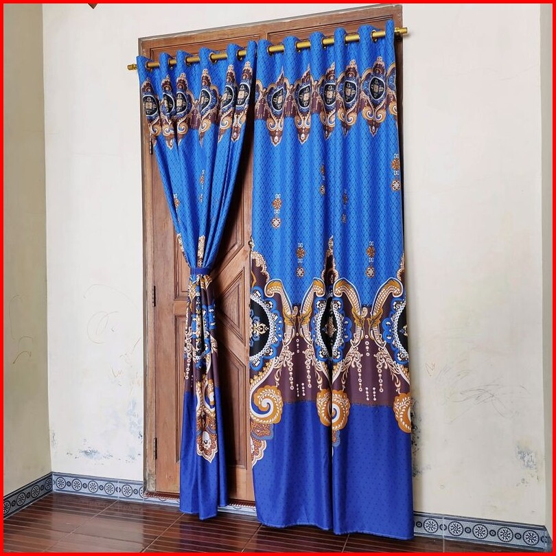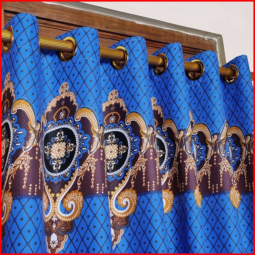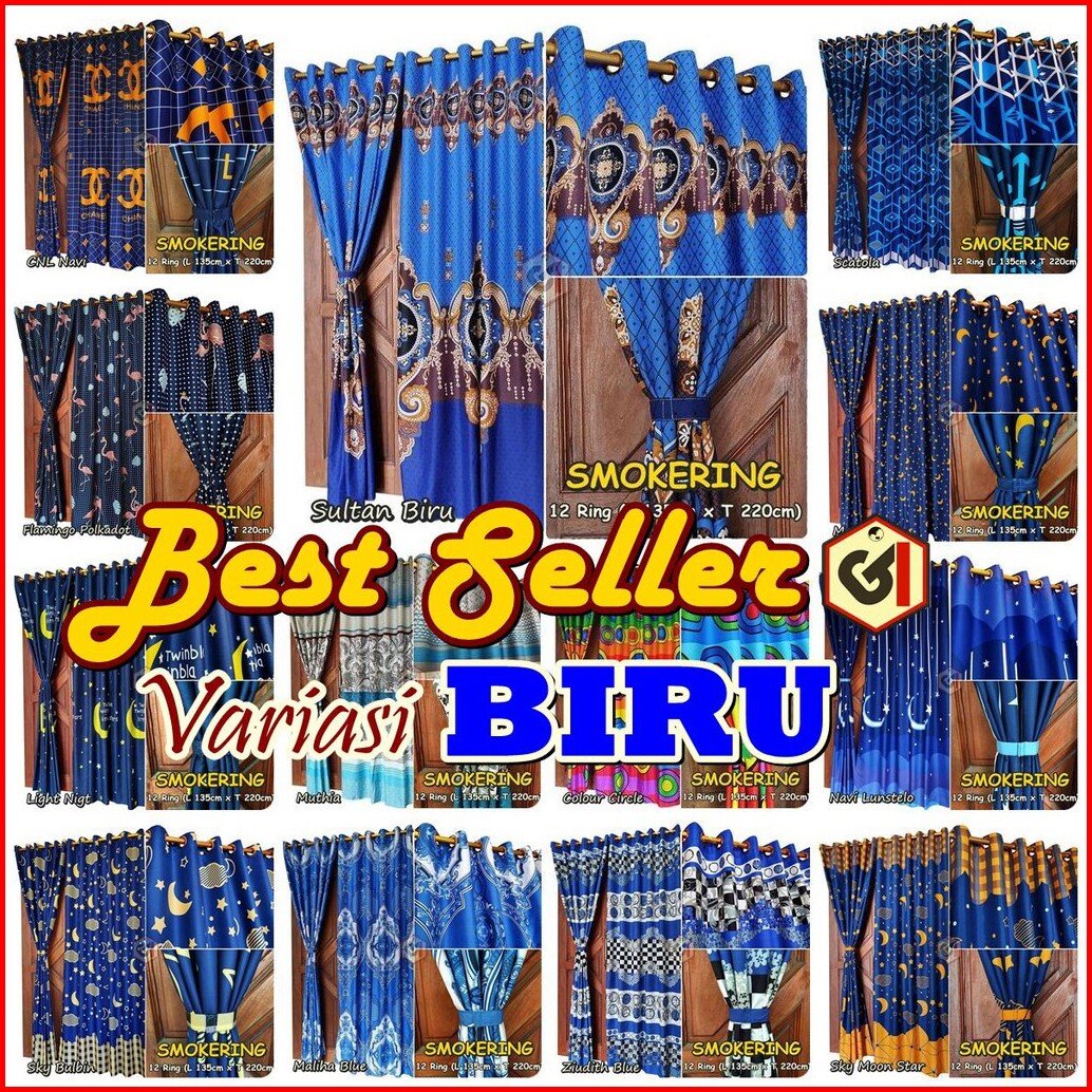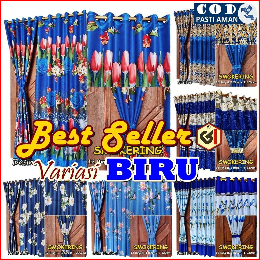 Gorden Smokring Asli 12 Ring Untuk Pintu Jendela Panjang Dominasi Warna Biru
