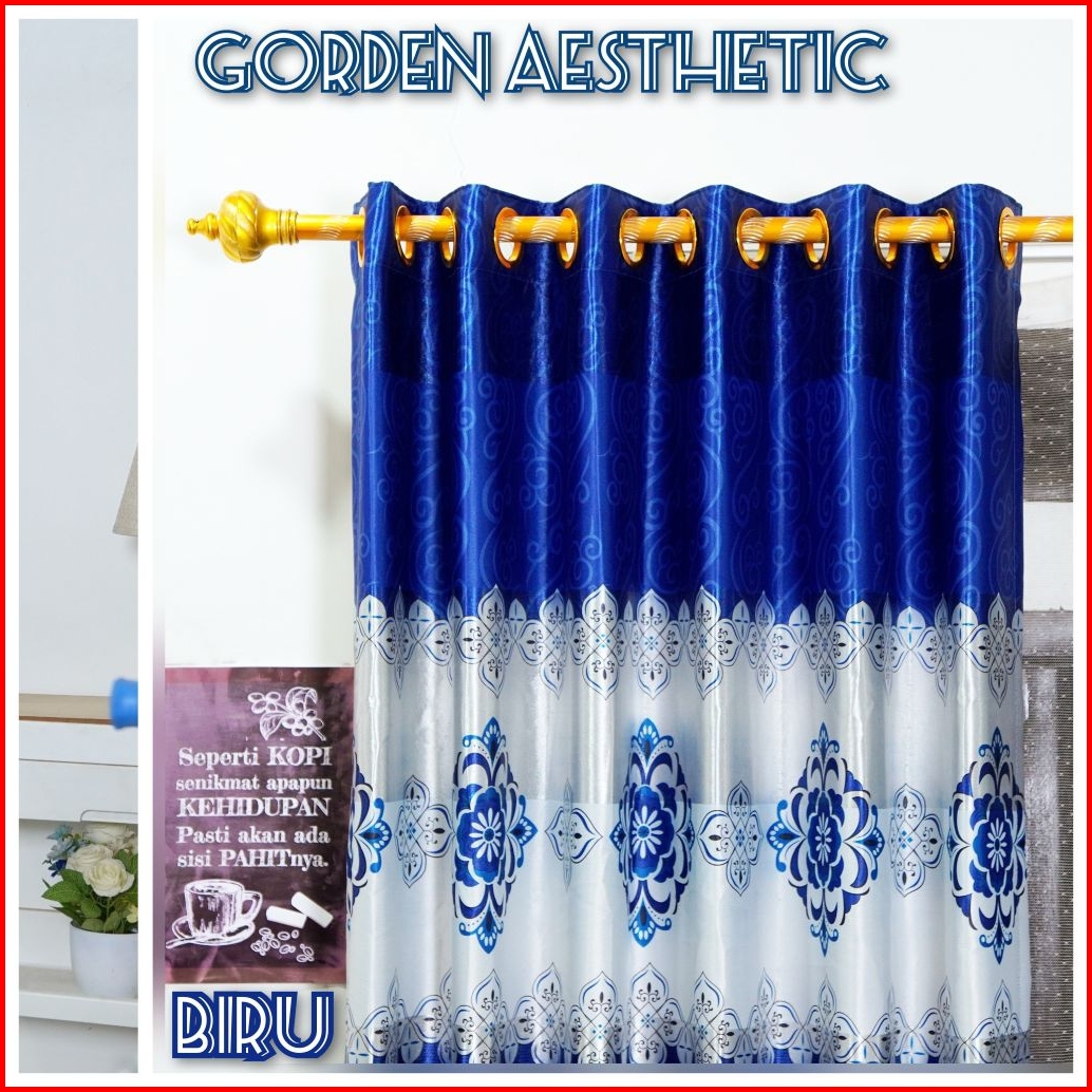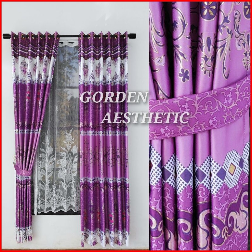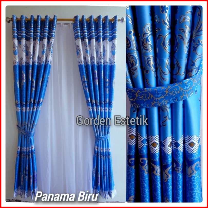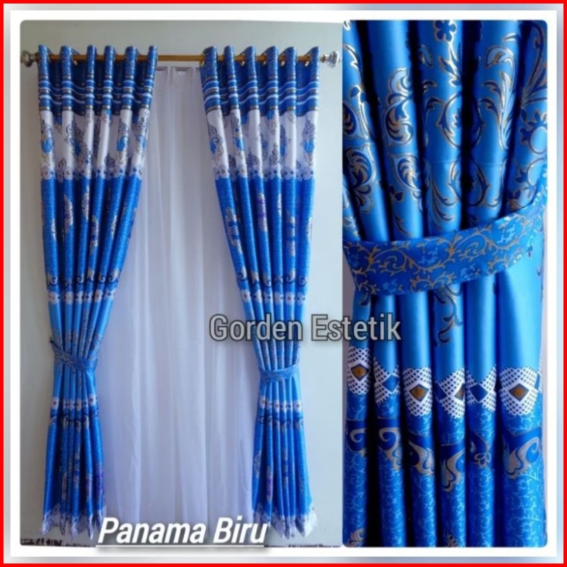 Gorden Blackout Motip Panama Warna Biru Hijau Pink Ungu Terbaru Model Smokring 6 Gelombang