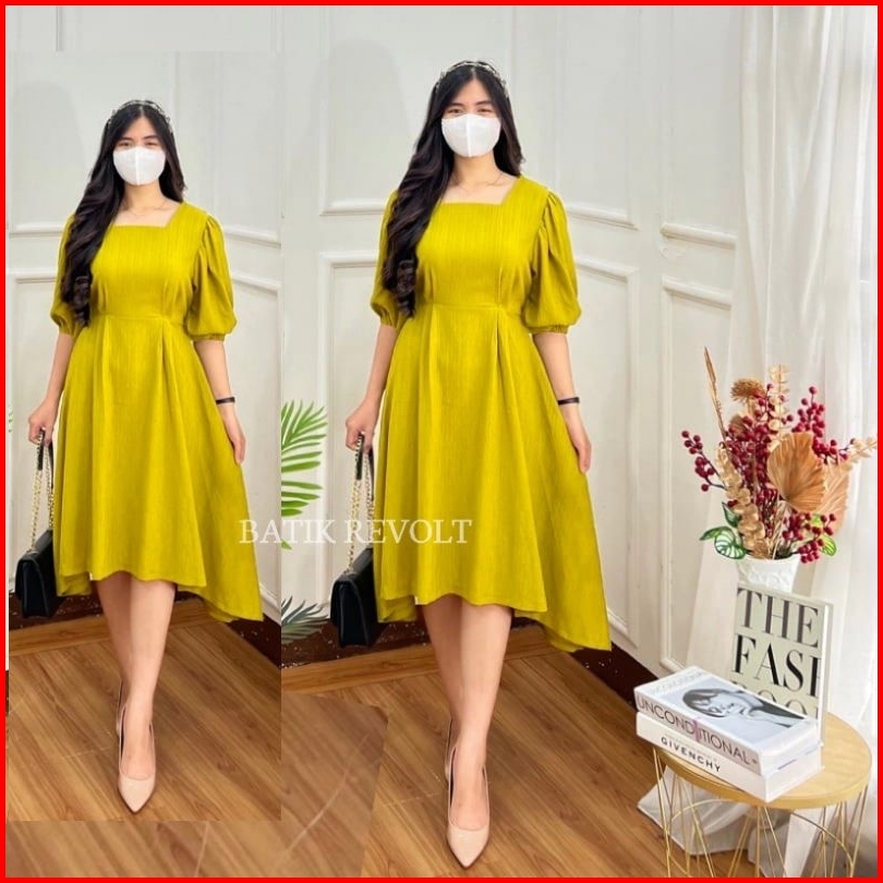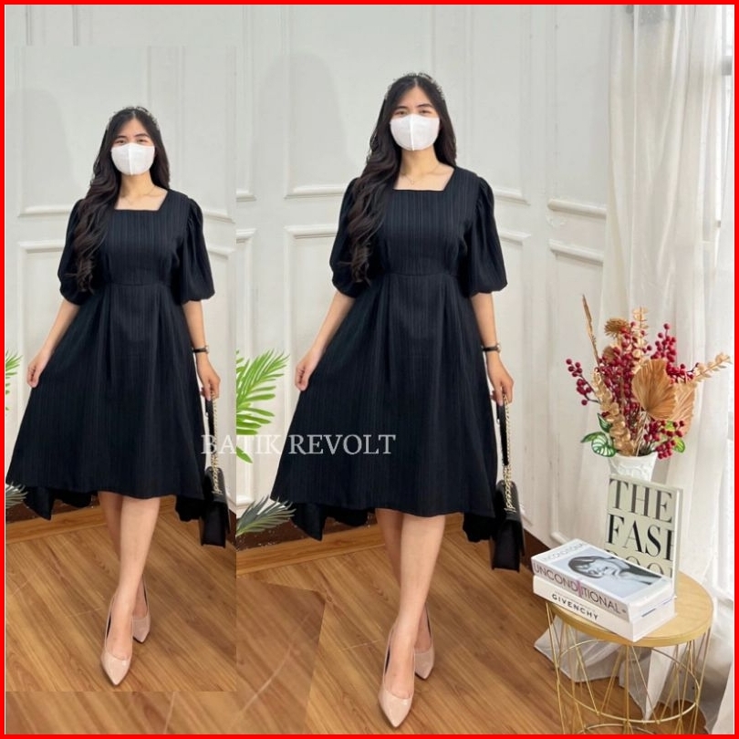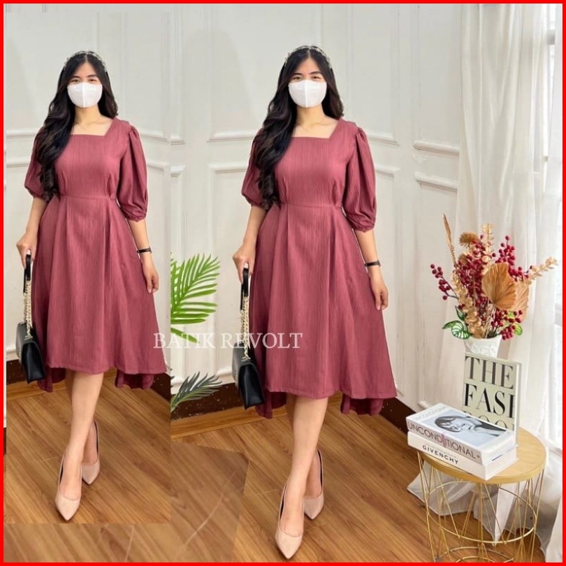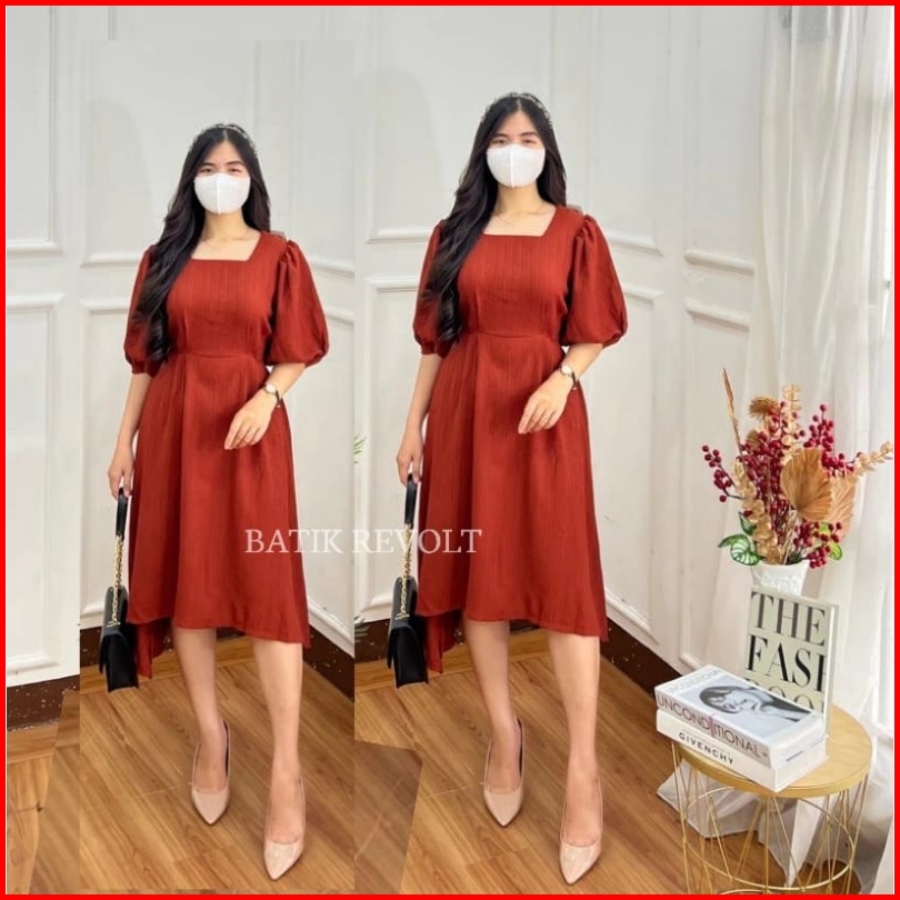 Dress Wanita Casual Midi Dress Wanita Kondangan Gaun Pesta Party Bahan Lady Crush Premium