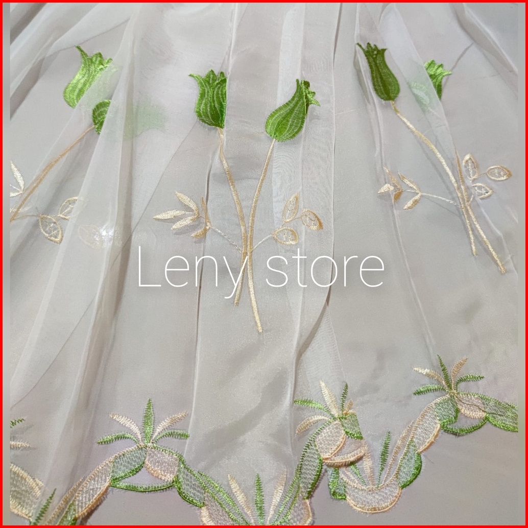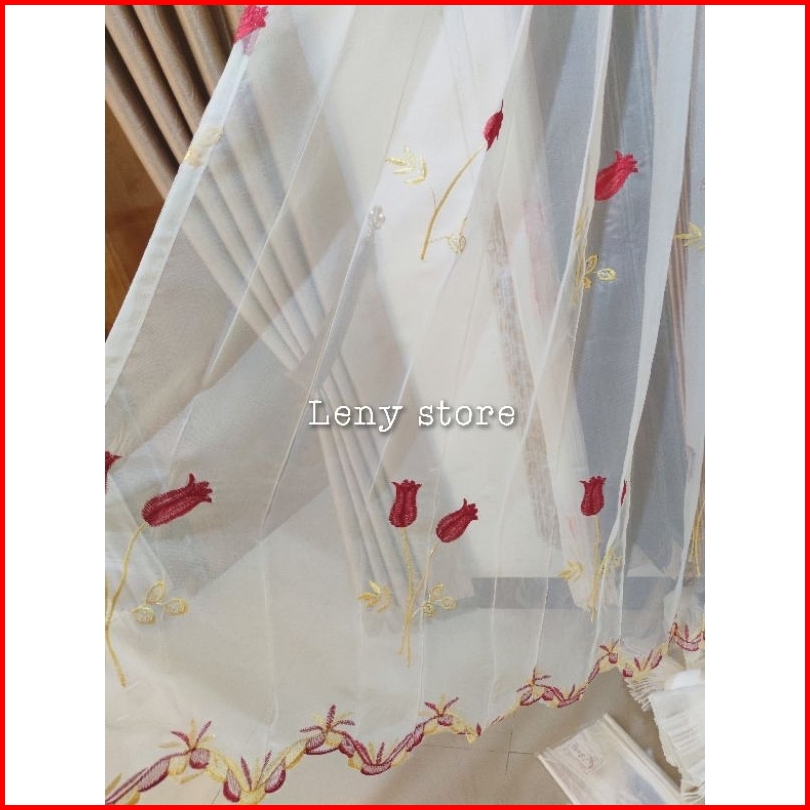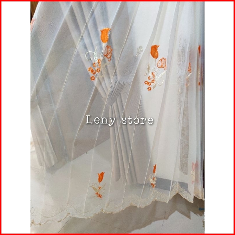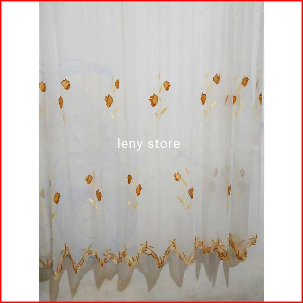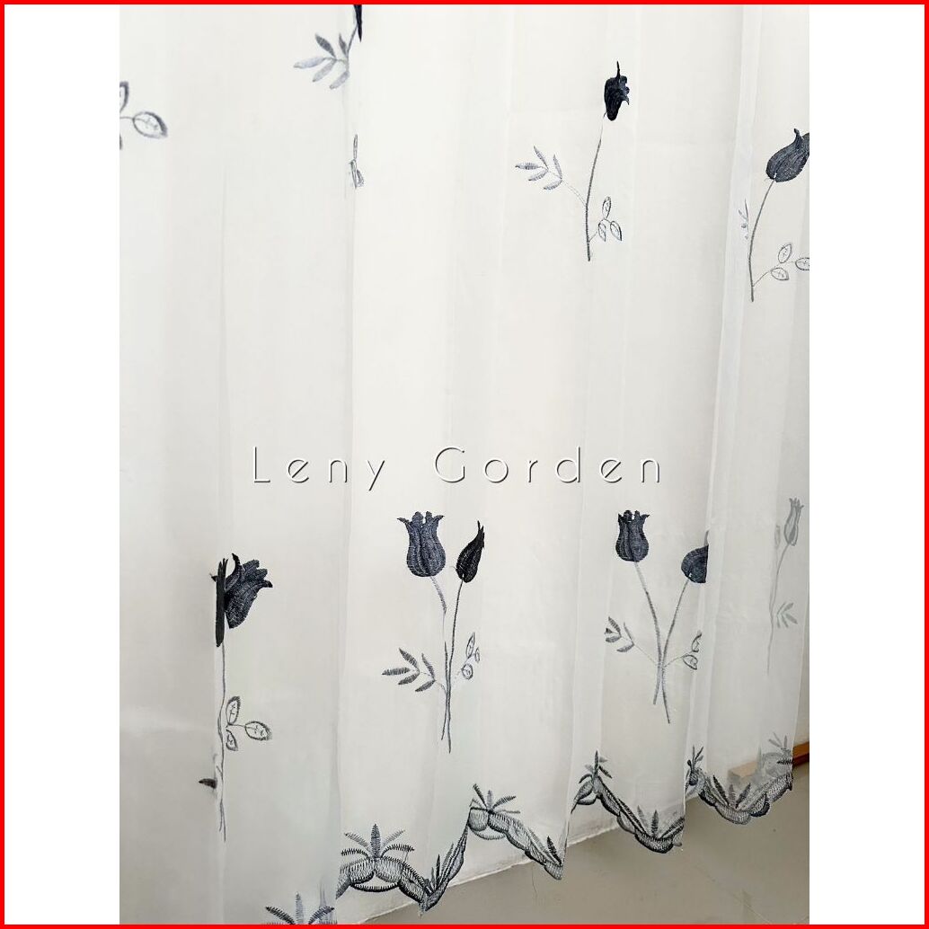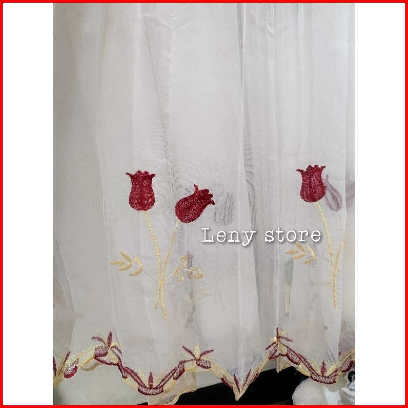Gorden Vitrase Bordir Bunga Tulip Transparan Tirai Vitras Putih Pelapis Korden Furing Jendela Pintu
