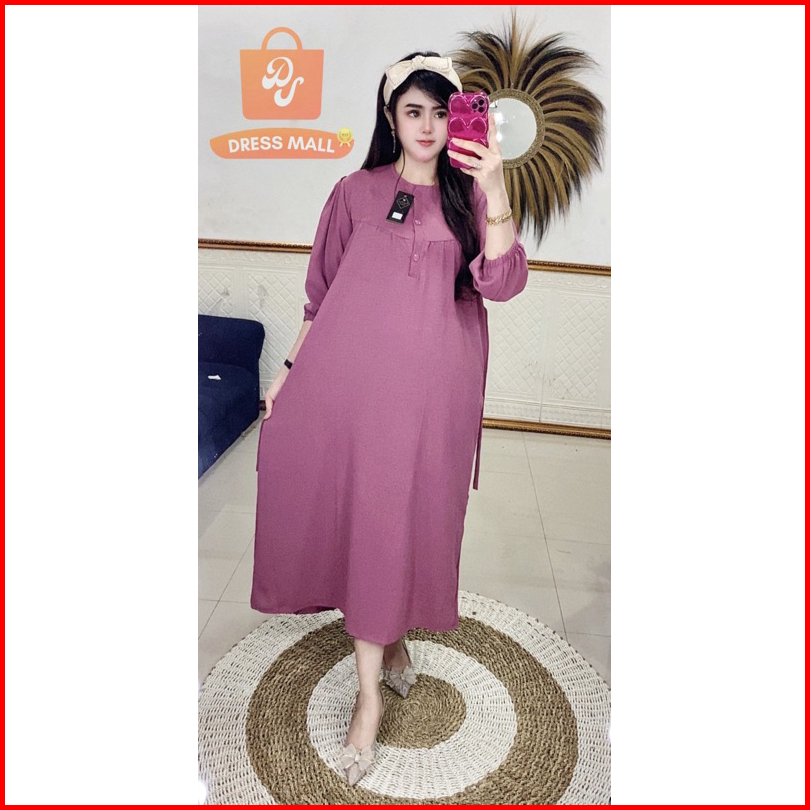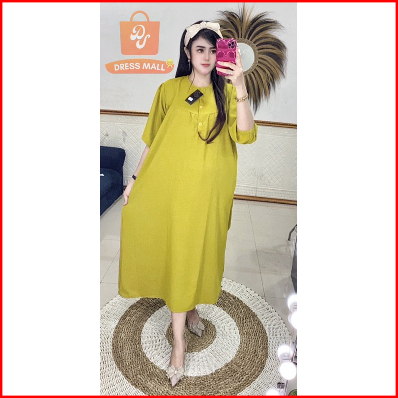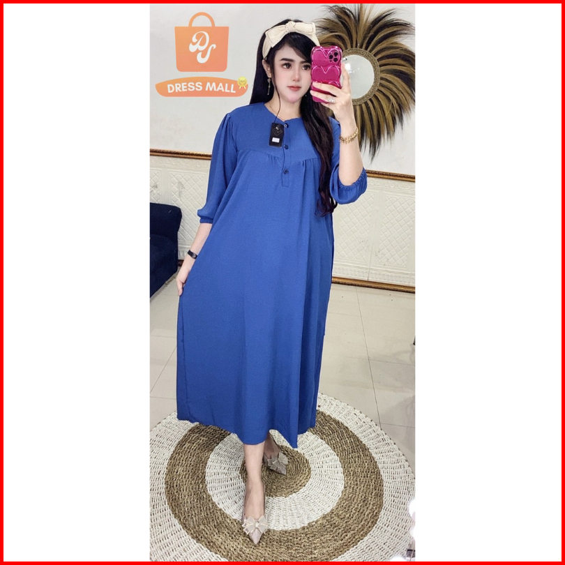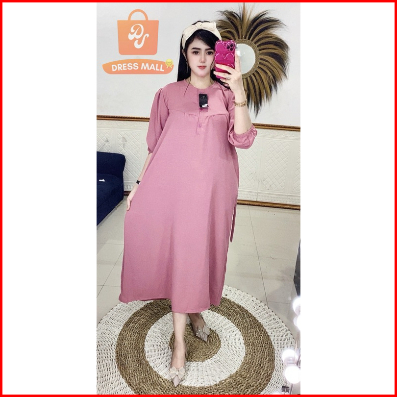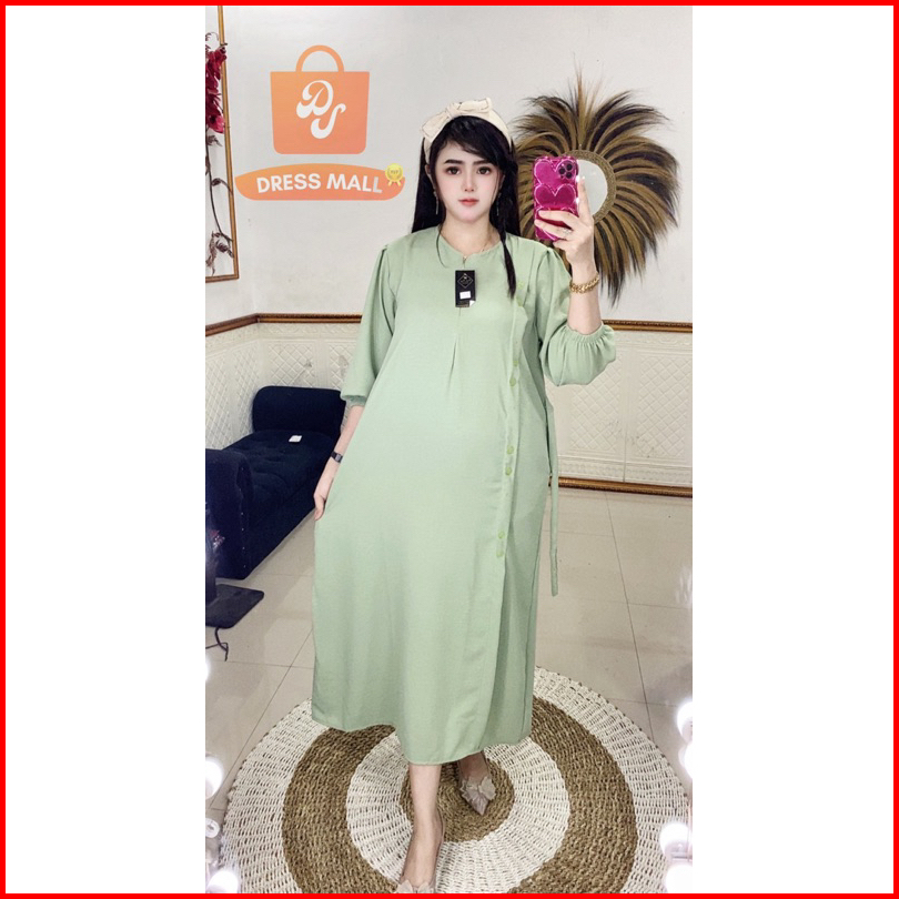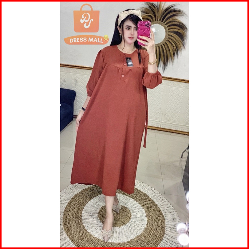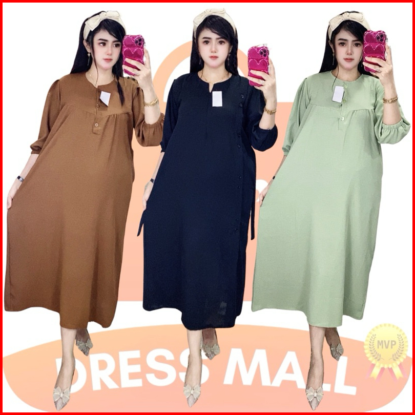 Midi Kancing Wangki Lengan Karet 7 8 Cringkle Airflow Dress Kekinian Busui Bumil Daster Viral