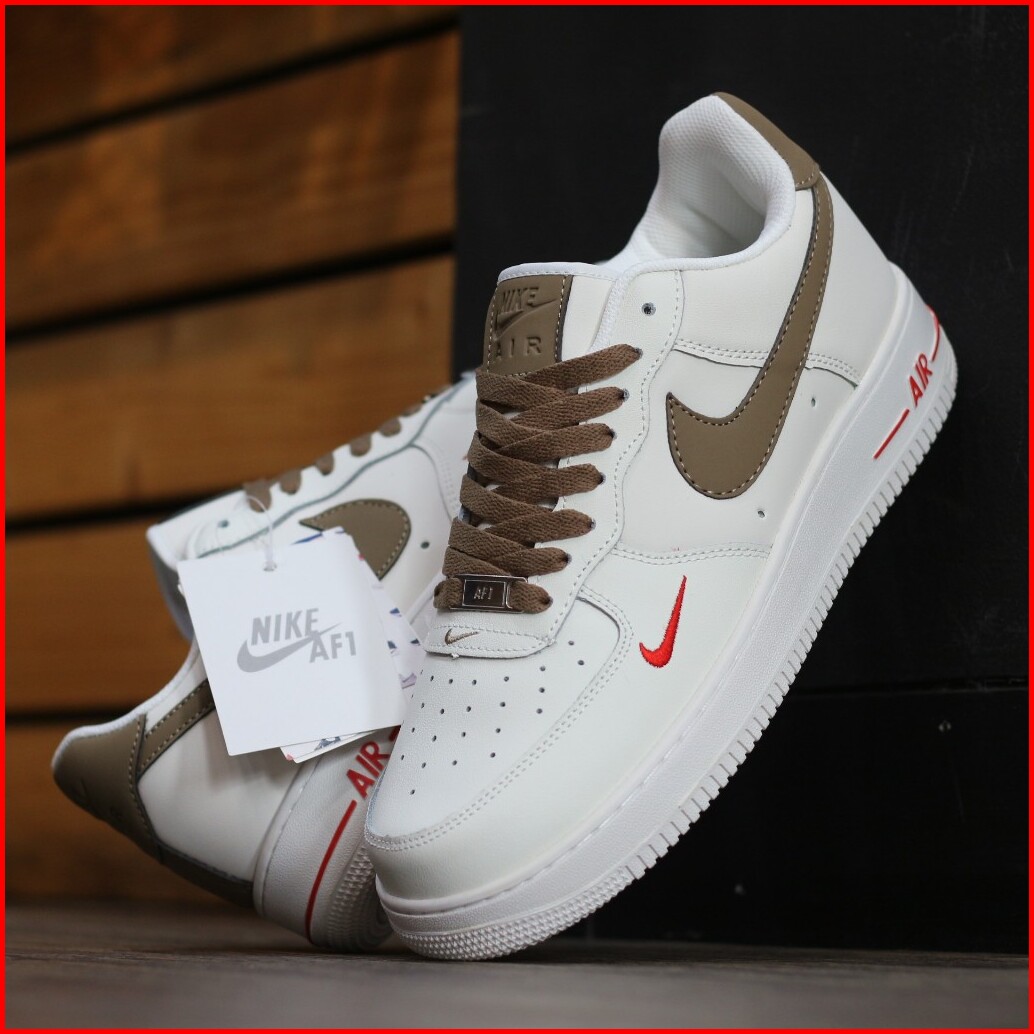 Sepatu Sneakers Pria Dan Wanita Nike Air Force 1 White Lis Brown Red Casual Kets Sport New Low