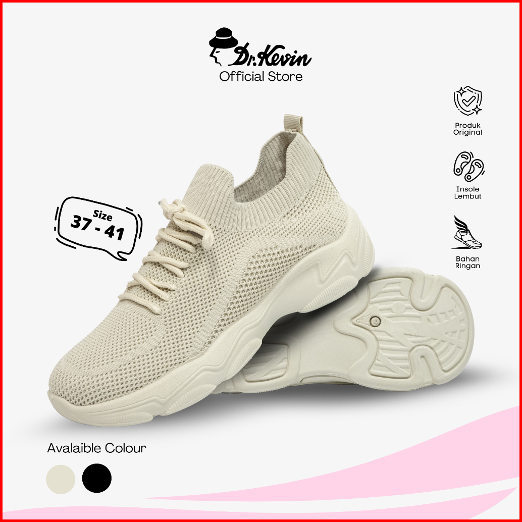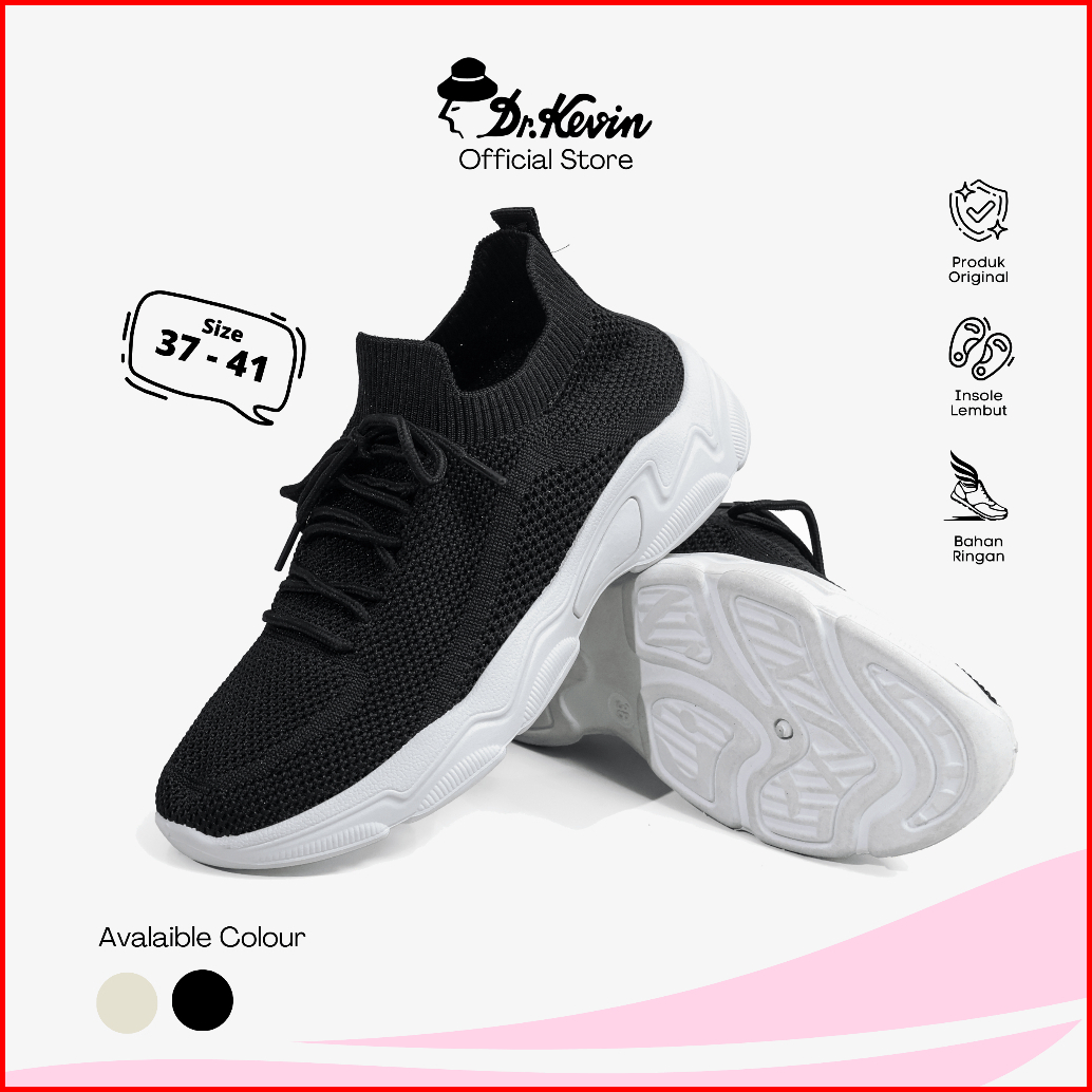Limited Stock Dr. Kevin Sepatu Olahraga Sport Wanita Sneakers Flyknit Tali 589-047 Hitam Only