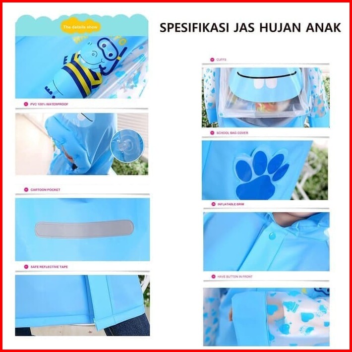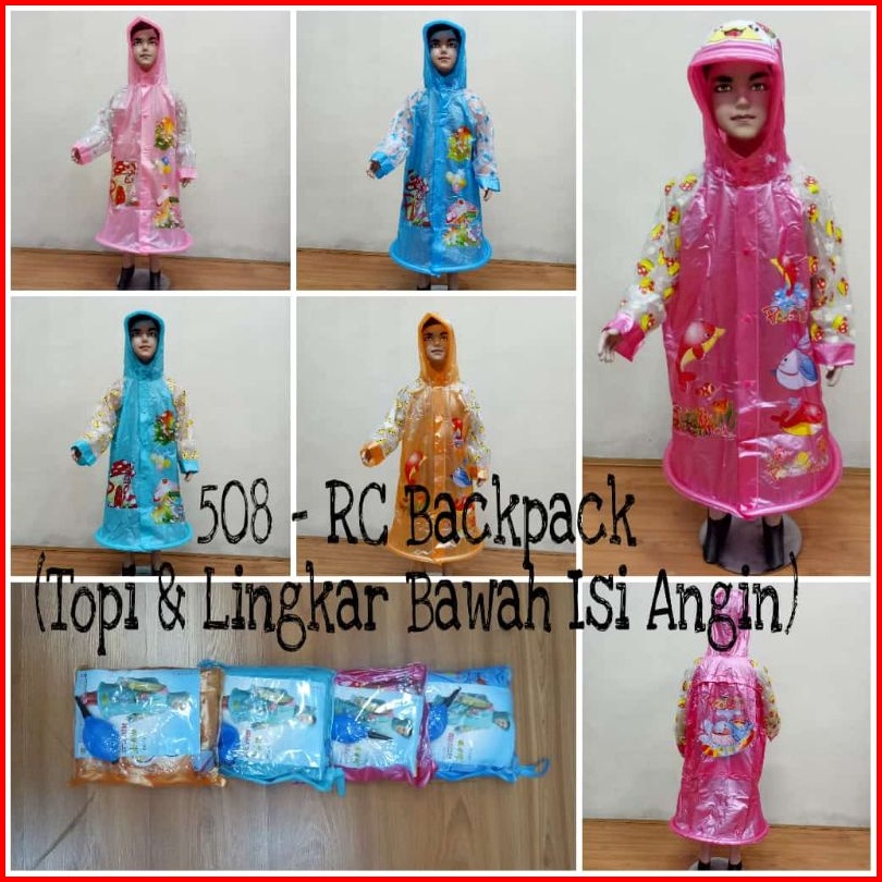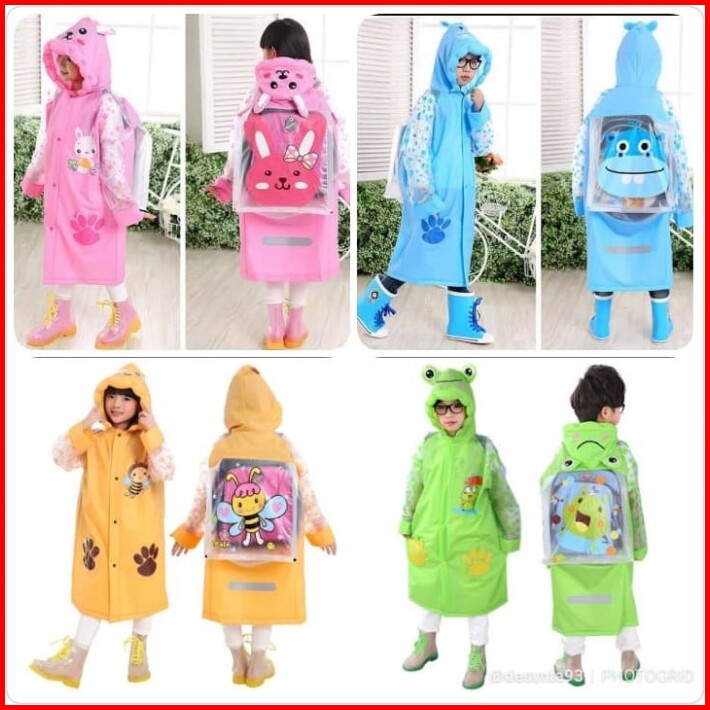 Jas Hujan Anak Terusan Karakter Lucu Backpack Tas - Mantel Mantol Anak Laki-laki Perempuan