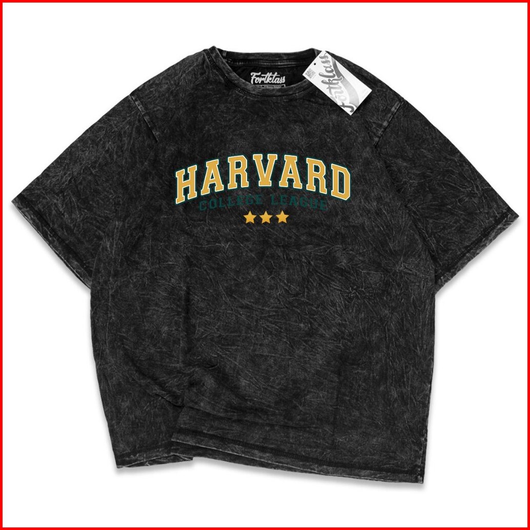 Fortklass Kaos Wash Harvard Kaos Oversize Pria Lengan Pendek Atasan Tshirt Distro Cowok Kaos Pria Kaos Polos Bigsize