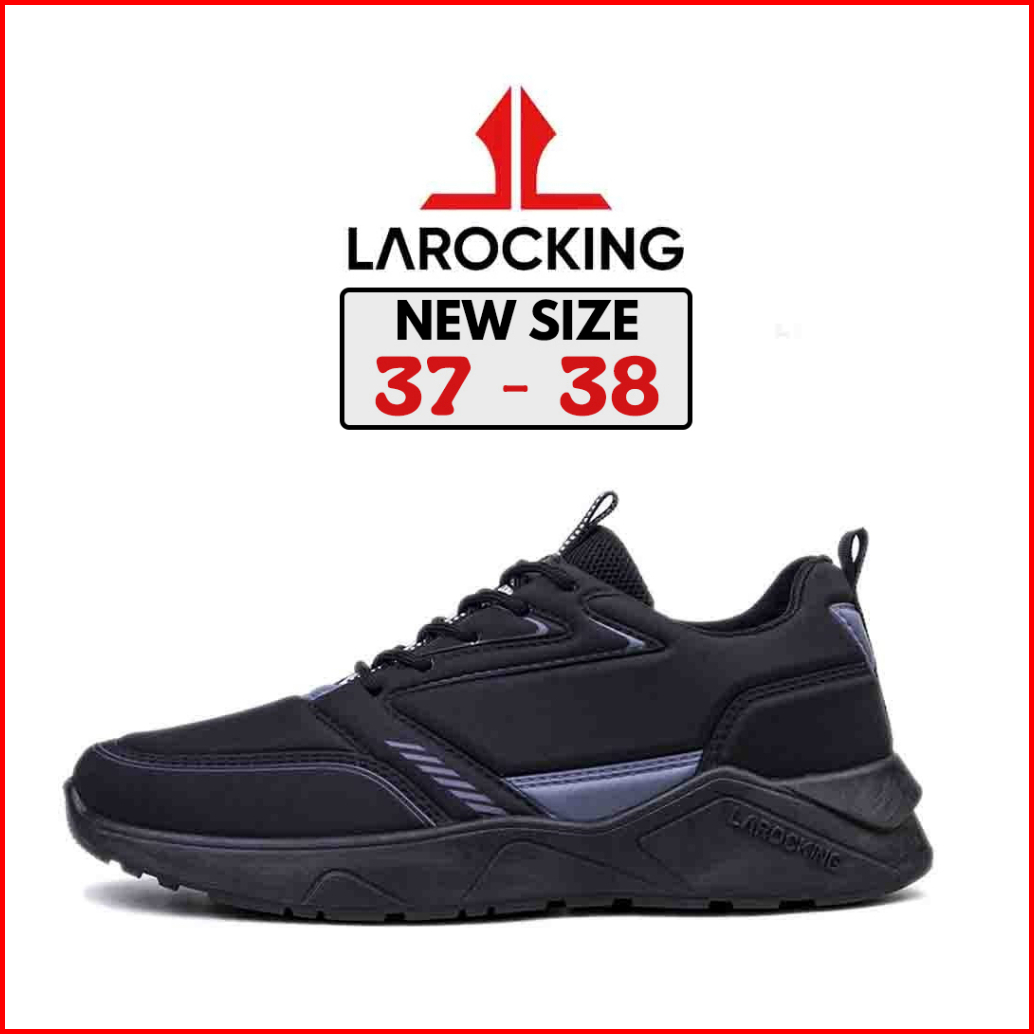 Larocking - Raptor Hitam Putih Polos Sepatu Sneakers Running Gym Shoes
