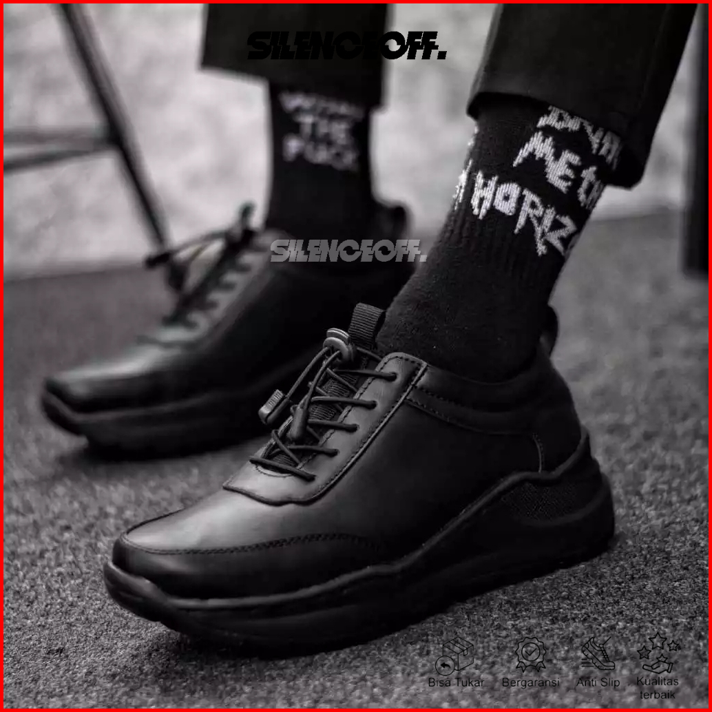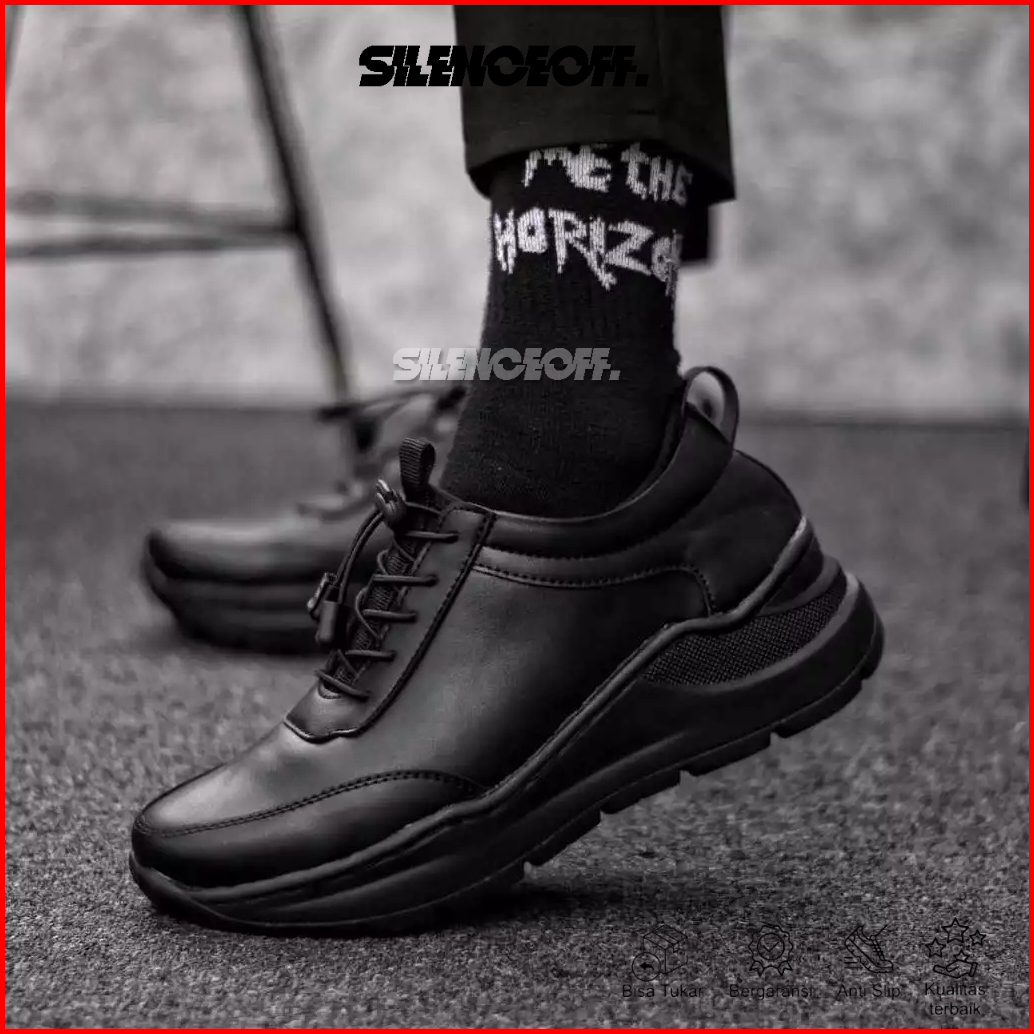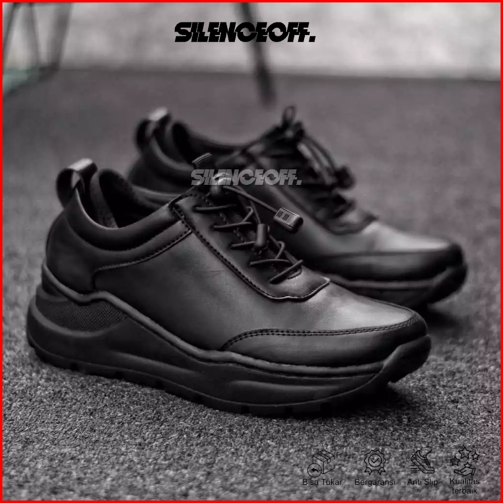 Silenceoff - Sneakers Pria Full Black Sepatu Kasual Dan Formal Desain Keren