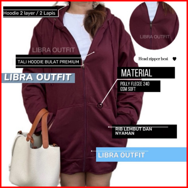 Oversize Hoodie Zipper Denim Wanita Switer Polos Hodie Korean Style By Libra