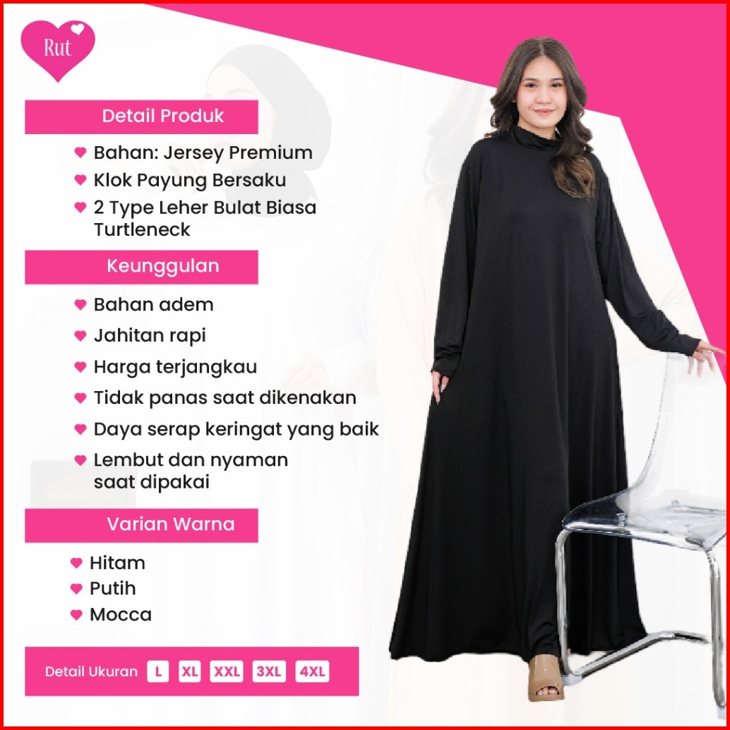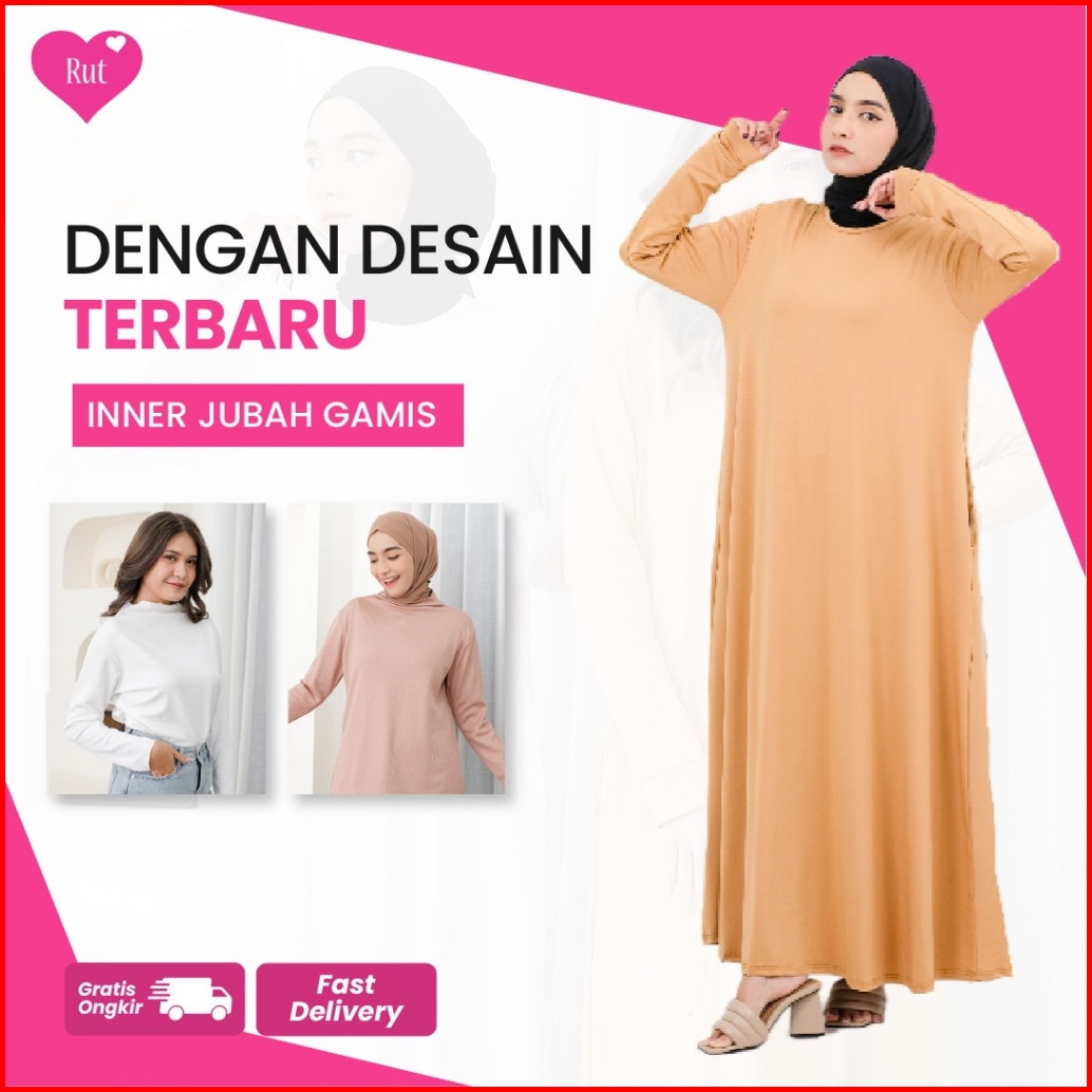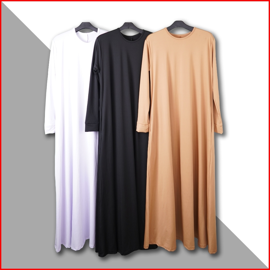 Inner Manset Dalaman Wanita Jersey Premium Lengan Panjang Model Payung Untuk Gamis Jubah Polos Leher Bulat Dan Turtlenec