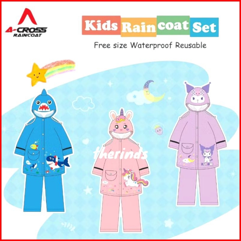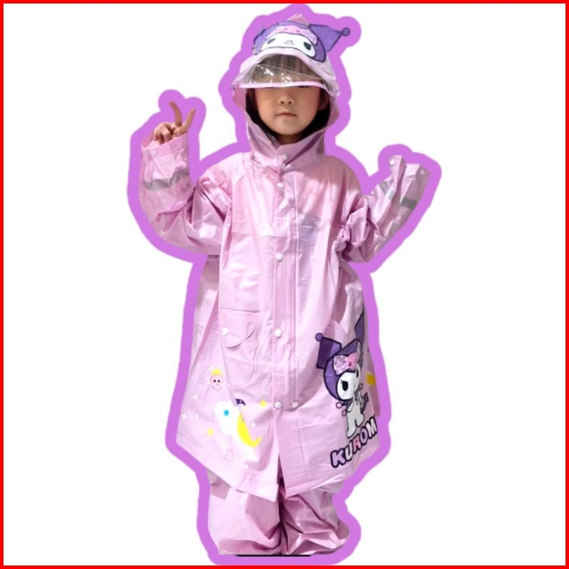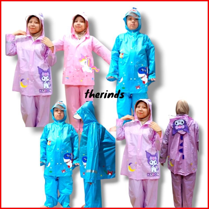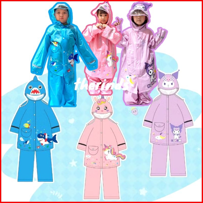 Jas Hujan Setelan Anak Kuromi Unicorn Shark 5-15 Tahun Jas Hujan Setelan Anak Laki Perempuan Jas Hujan Anak Karakter