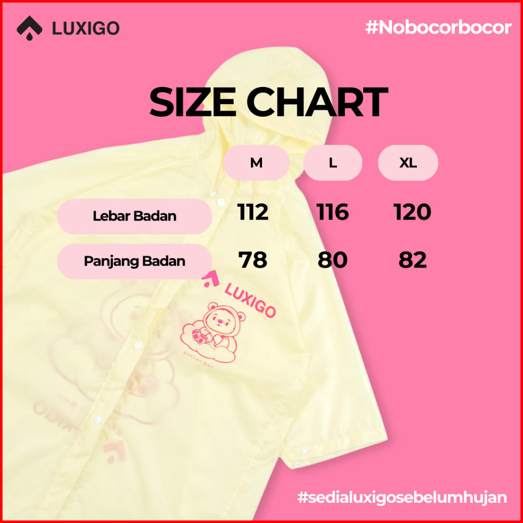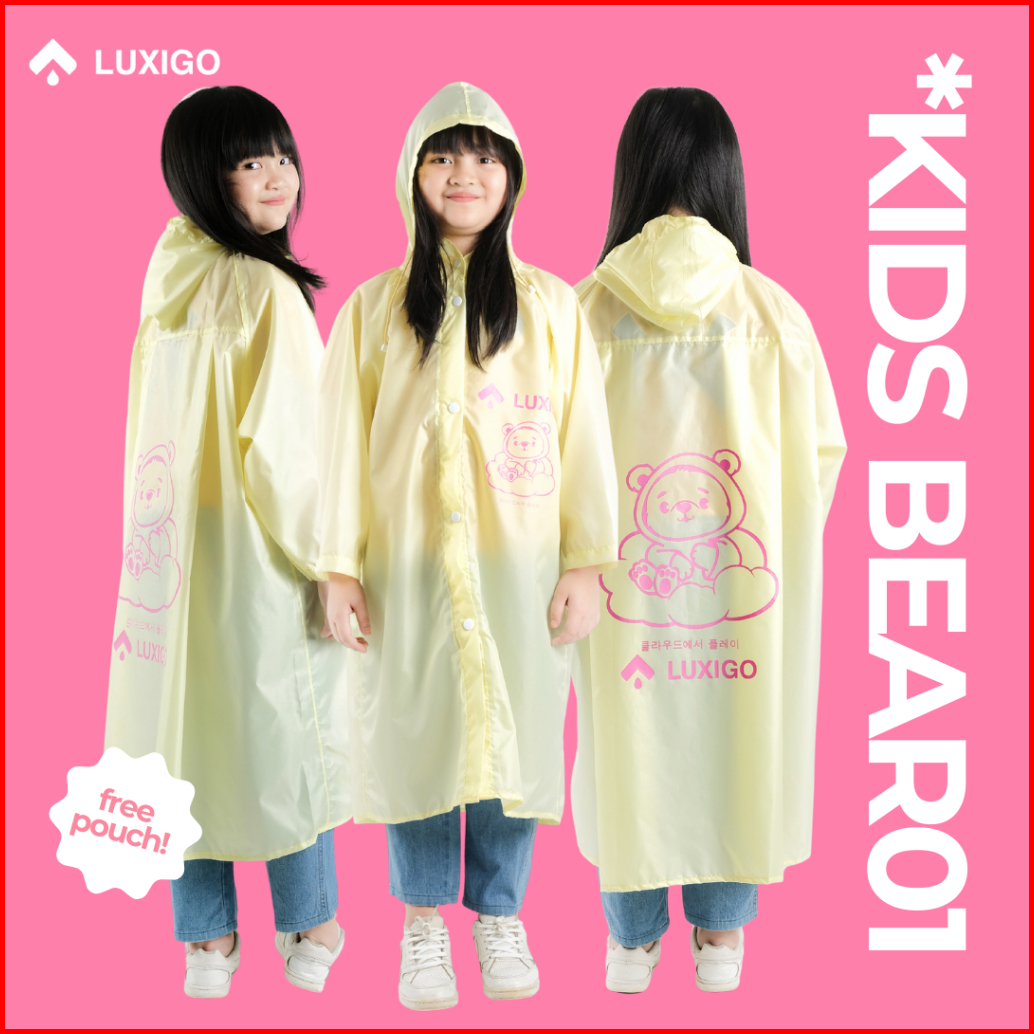 Jas Hujan Anak Luxigo Bear Kids01 Raincoat Anak Laki-laki Perempuan Polyester Seam Seal Waterproof