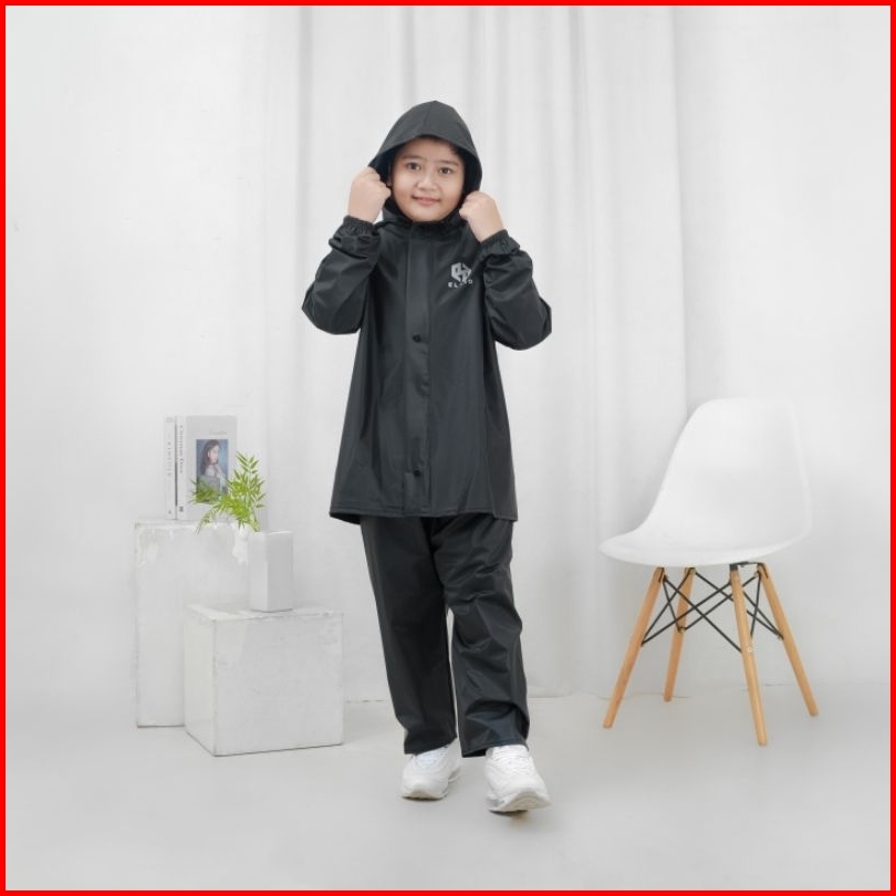 Elzio Jas Hujan Anak Raincoat Mantel Pria Wanita Karakter Hoodie Umur 3-13 Tahuntebal Lentur Anti Rembes