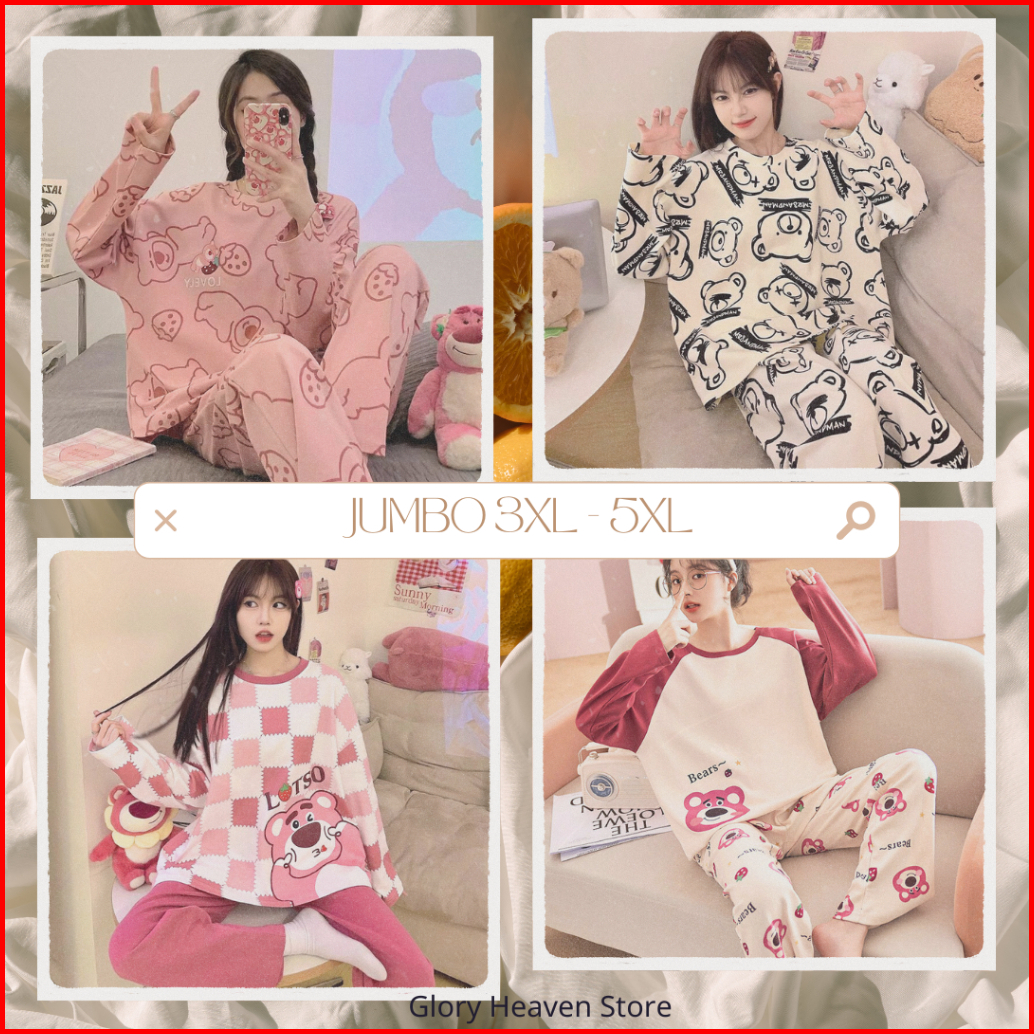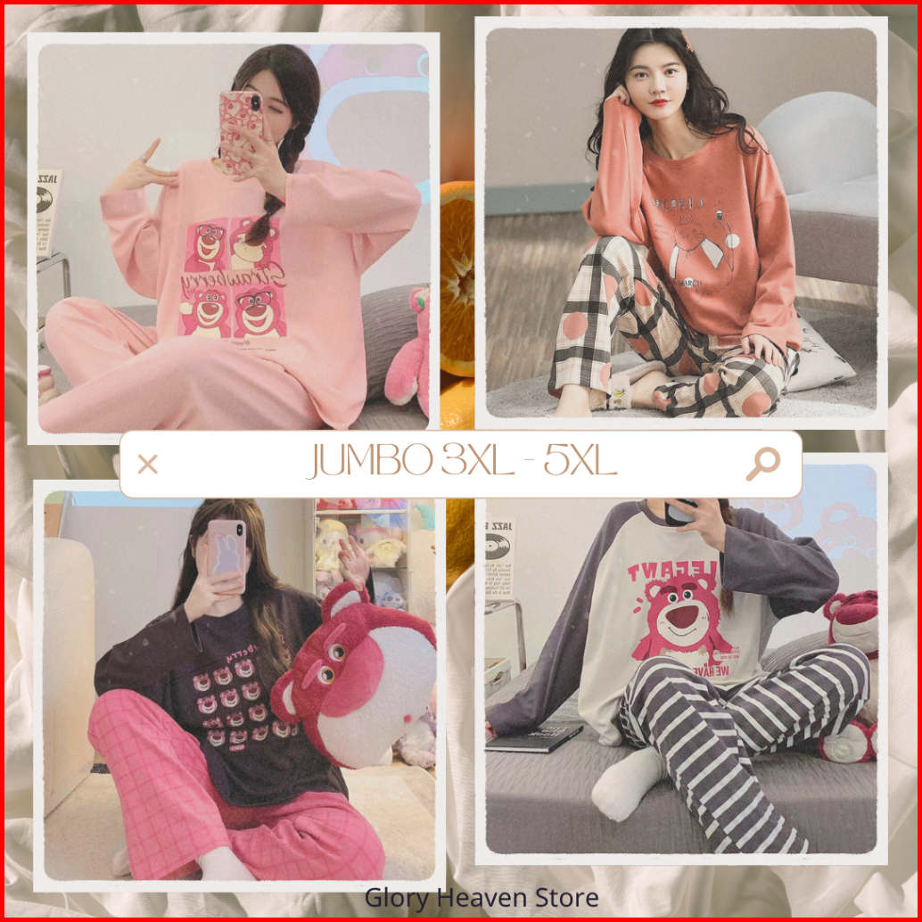 Glory Baju Tidur Wanita Lengan Panjang Celana Panjang 3xl 5xl Pajama Import Set Wanita Pp Jumbo