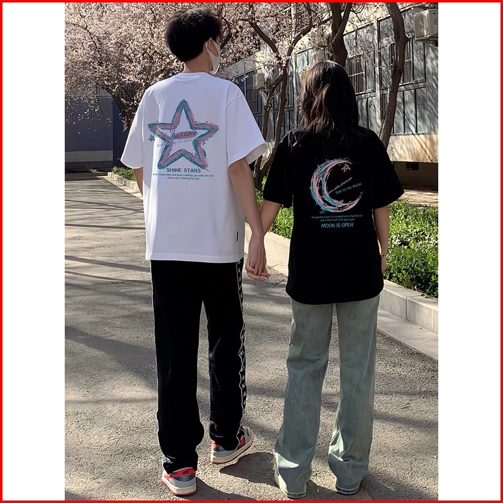Baju Couple Korean Style Pasangan Ibaju Kaos Couple Pasanganipola Corat-coret Bintang Bulan