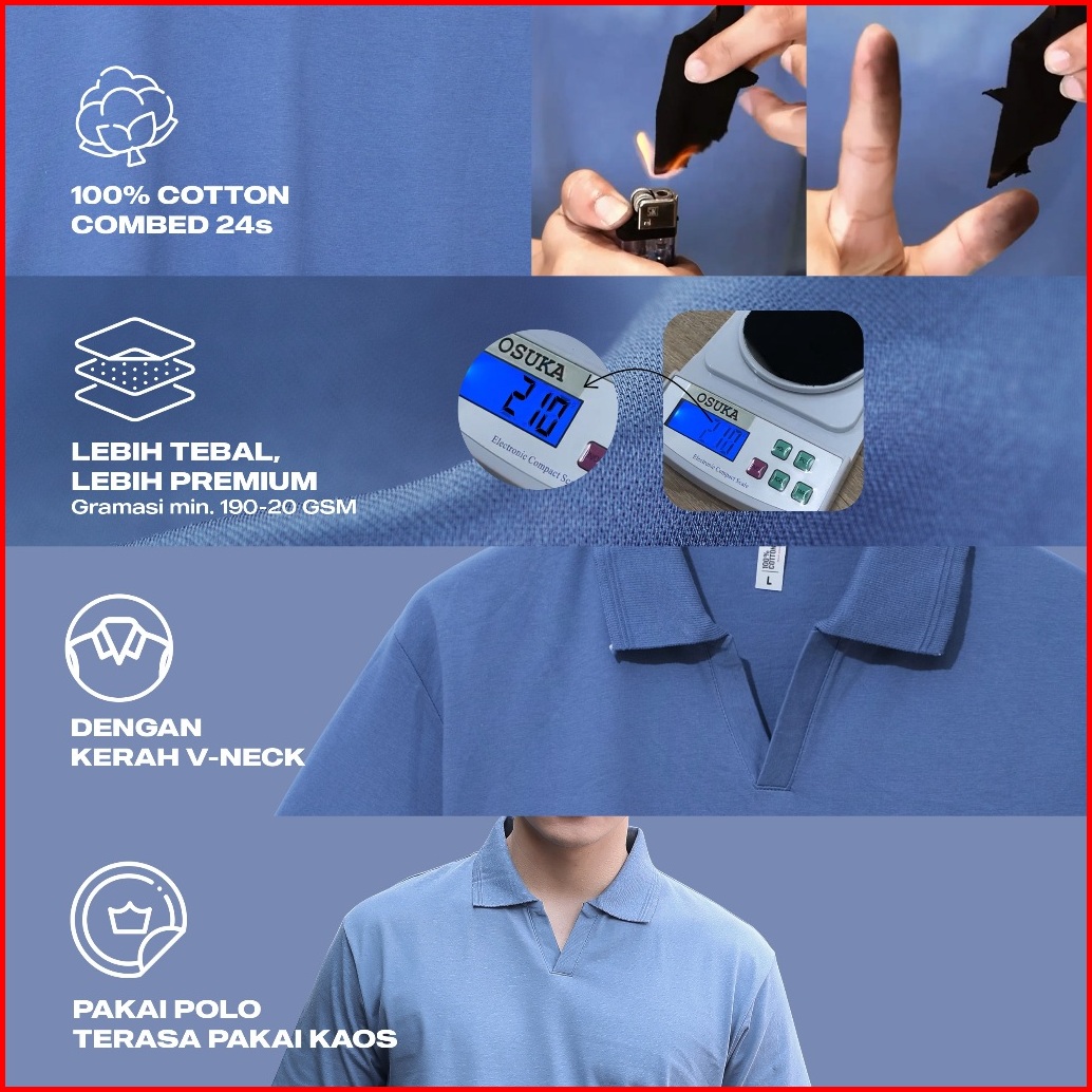 Polo-V. Hitam, Polo-V. Putih, Polo-V. Dongker, Polo-V. DeepBlue, Polo-V. DustyGreen, Polo-V. SageGreen, Polo-V. AbuMuda