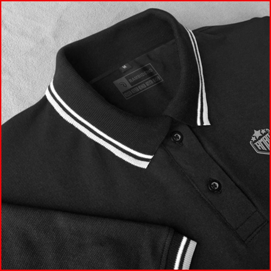 Rambidend - Polo Shirt Polos List Putih - Polo T-shirt Kerah Keren Pria Wanita H01sjy Logo 3star