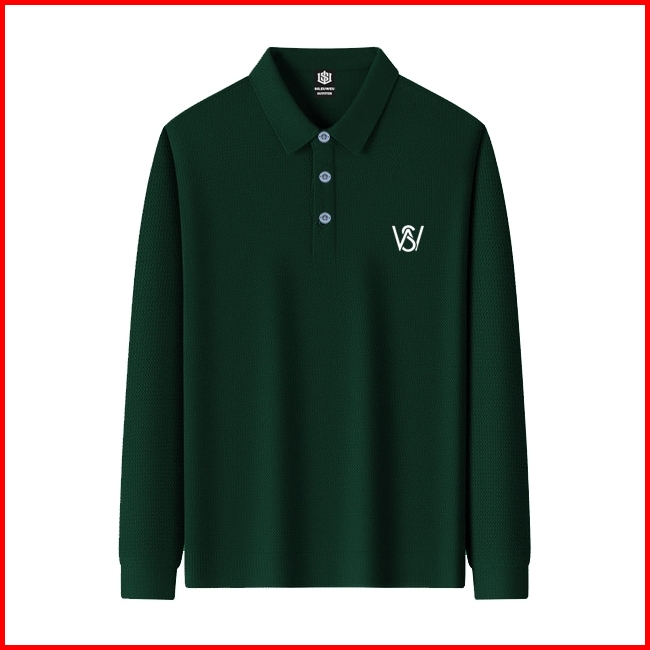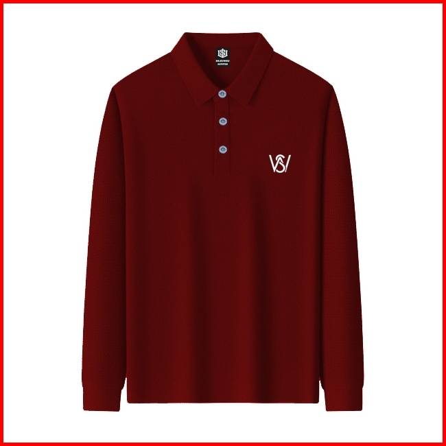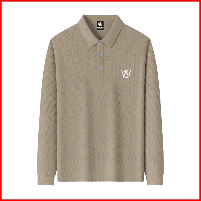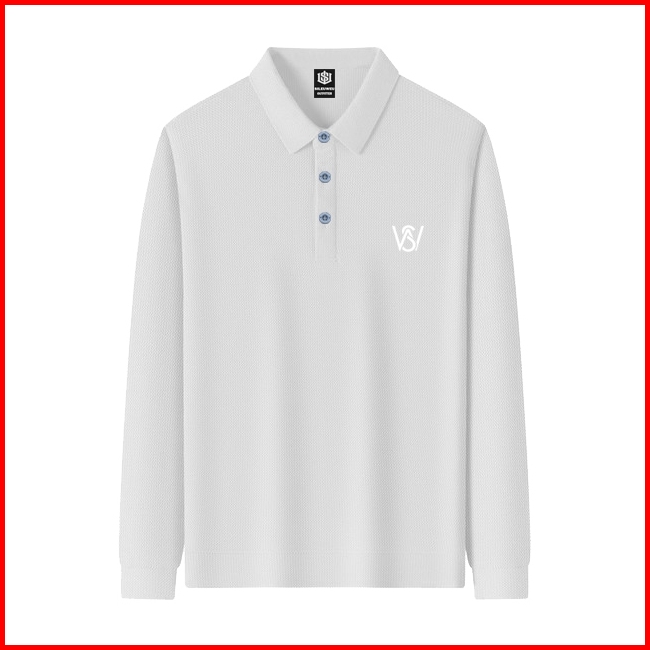 Sileuweu - T-shirt Kaos Polo Lengan Panjang Sw Newtext Putih Terkeren Kerah Baju Kerja Santai Casual Unisex