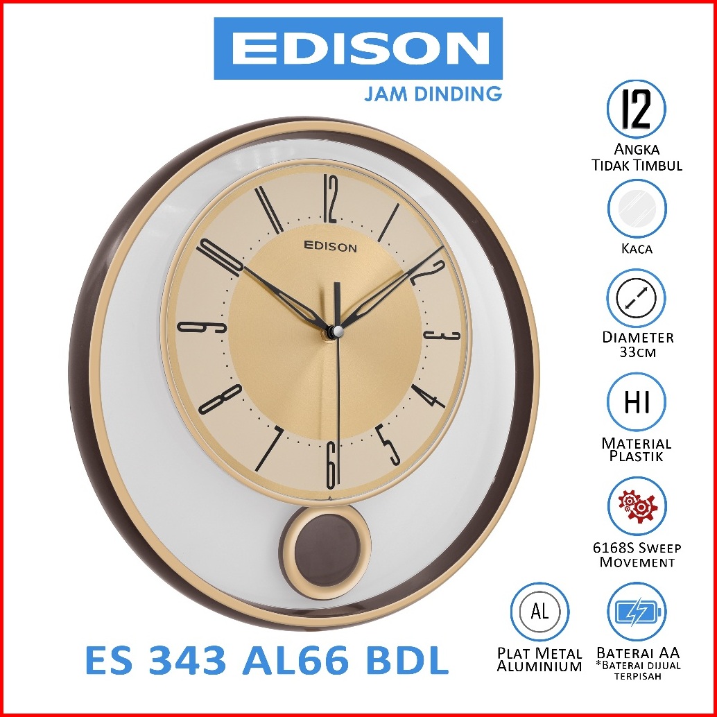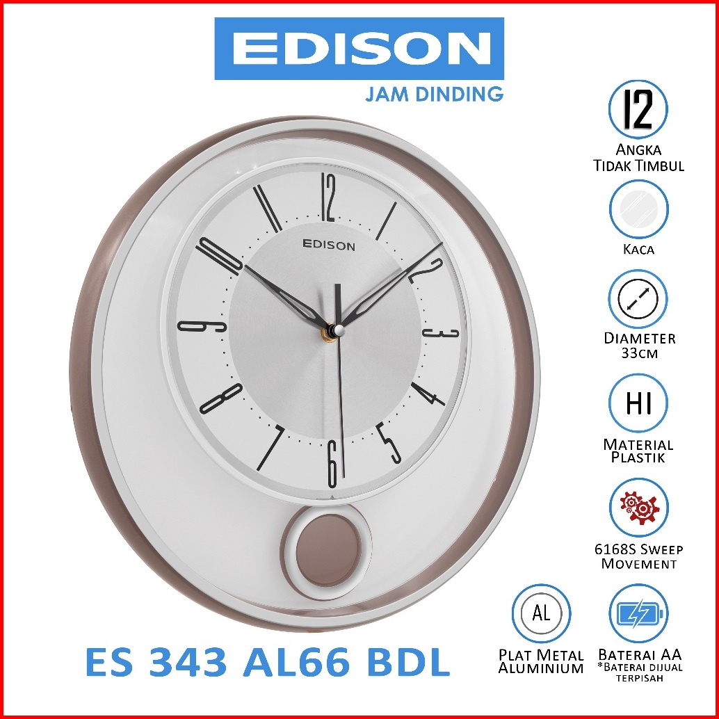 Jam Dinding Edison Sweep Es 343 Al66 Bandul Diameter 330mm 33cm