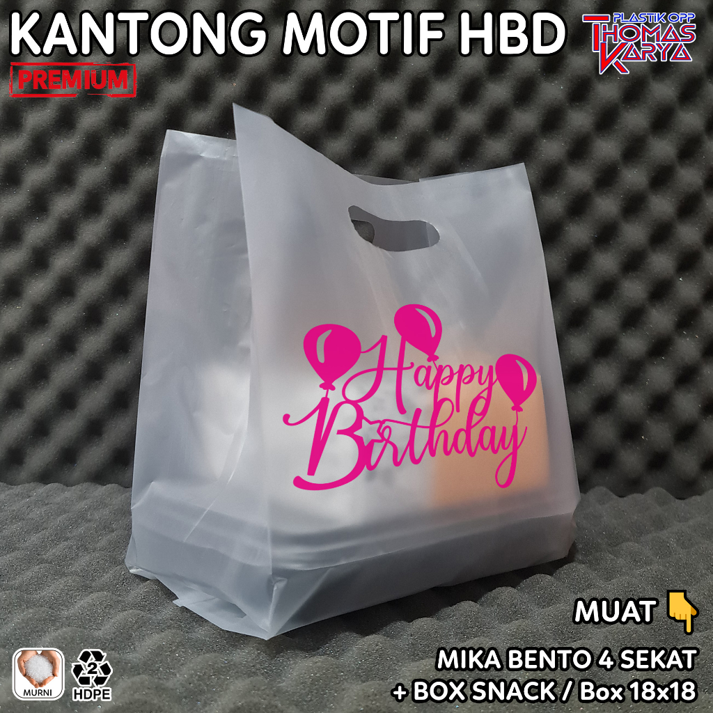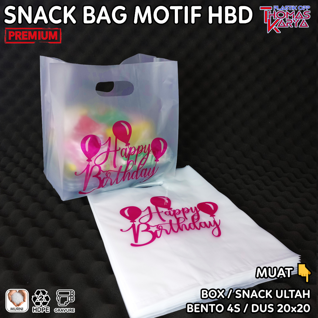 PLASTIK ULTAH 20X30 HAPPY BIRTHDAY PINK ISI 50 TAS BINGKISAN SNACK ULANG TAHUN HBD SOFTHANDLE DOVE