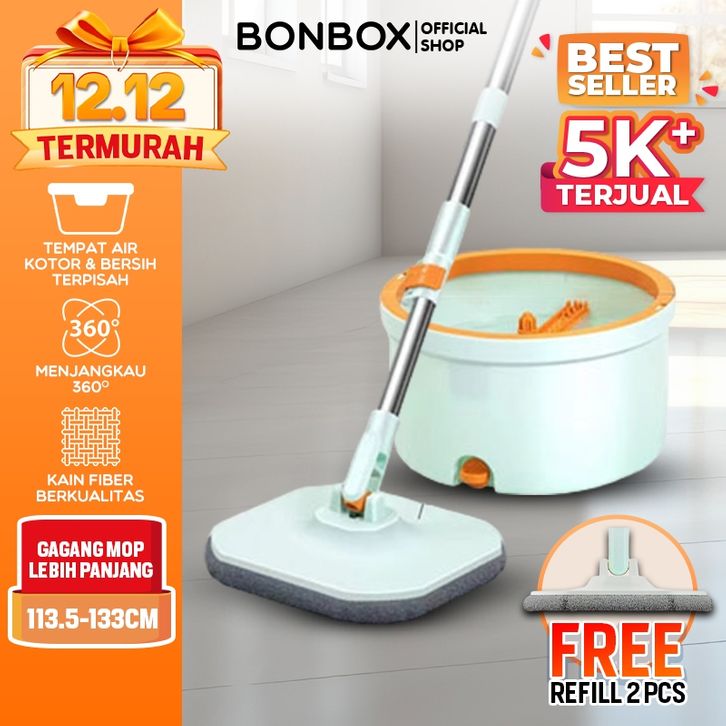 BONBOX Alat Pel Lantai 2 in 1 DAPAT 2 Kain Refill Ember Terpisah Ember Terpisah Mop Kain Fiber d