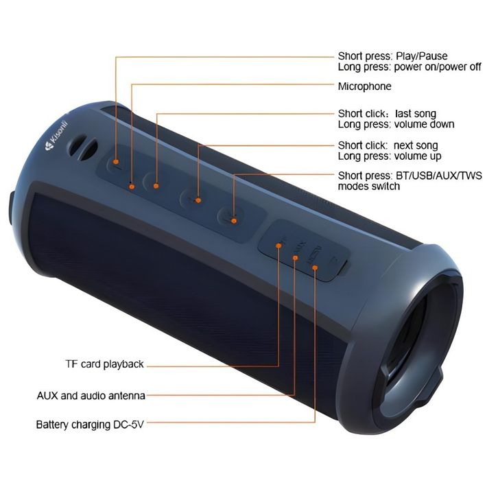 Speaker Bluetooth Portable Q5S Dual Bass Support FM Radio, TF, AUX KISONLI