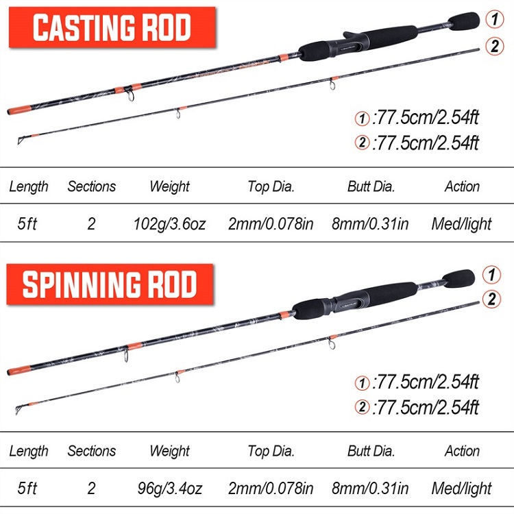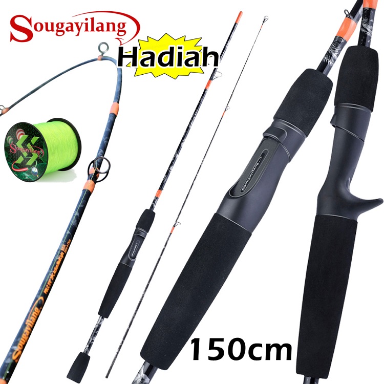 Sougayilang Joran Pancing Ultra Ringan Karbon 1.5M 2 Bagian Pegangan EVA Casting Untuk Memancing Di Danau Sungai Dan Air