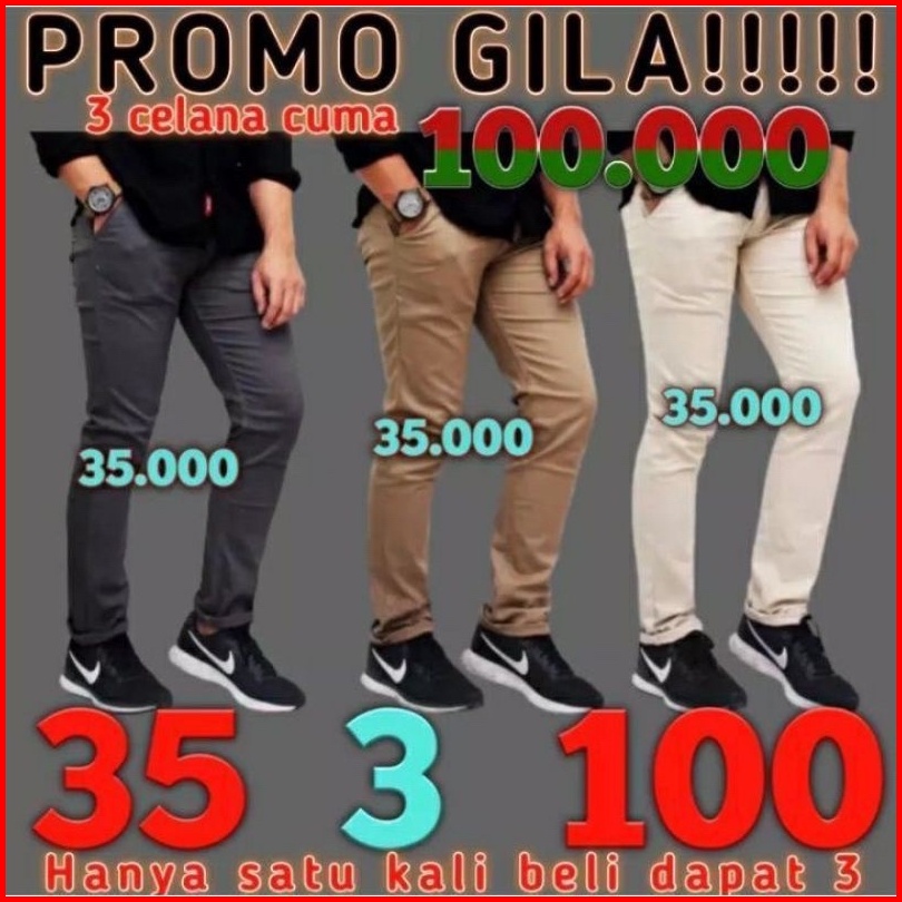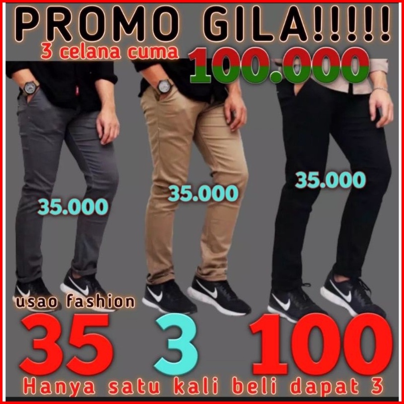 Promo Celana Chinos 90 Ribu Dapat 3 Pcs Celana Panjang Pria Kekinian