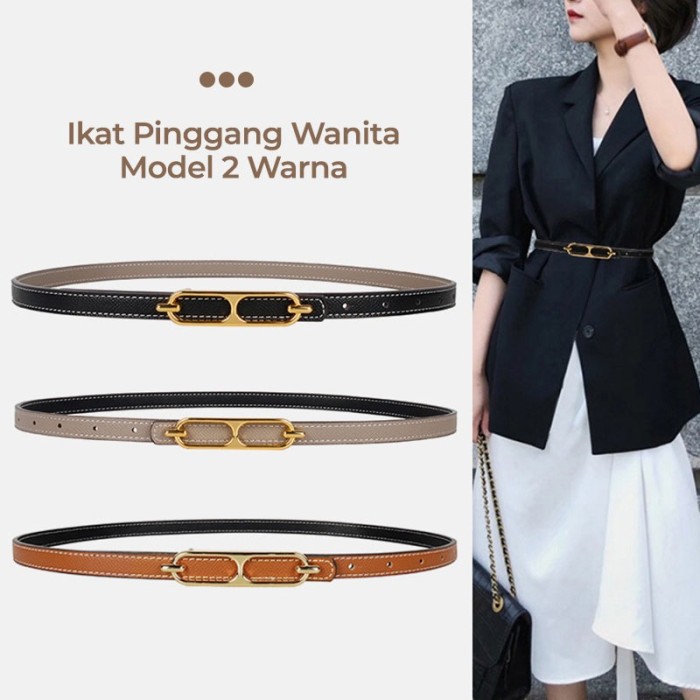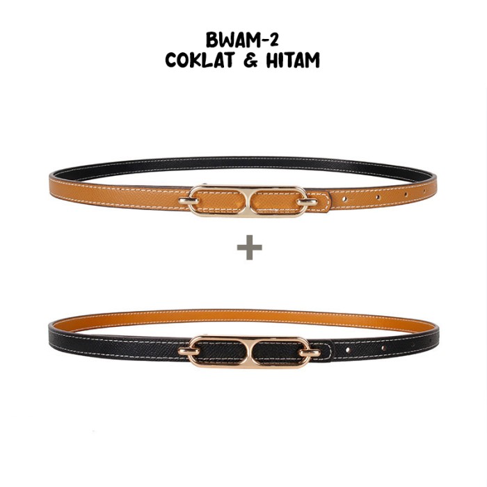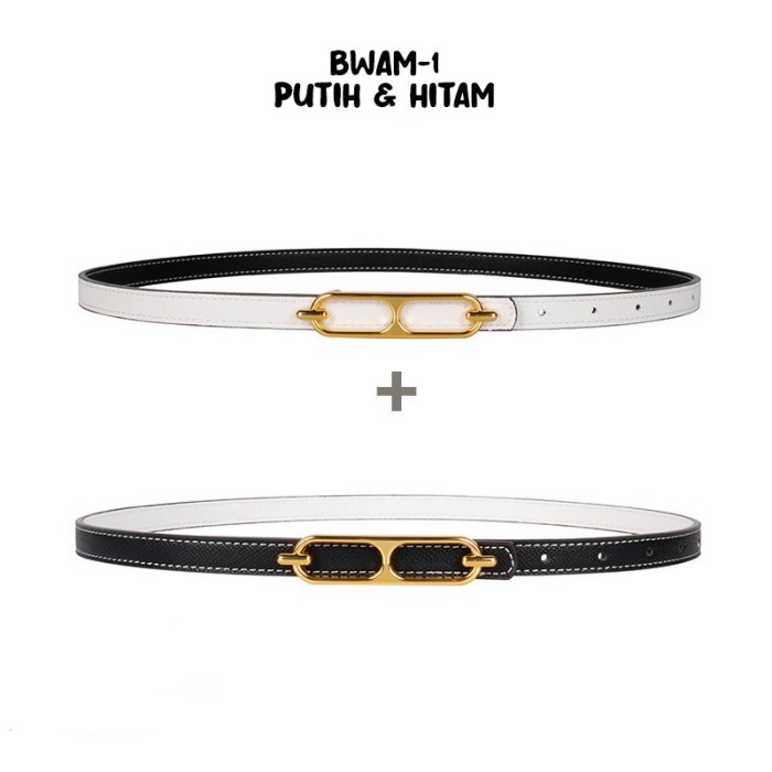 IKAT PINGGANG WANITA BELT KULIT FASHION KOREA SABUK WARNA BOLAK BALIK - 5-PUTIH KHAKI
