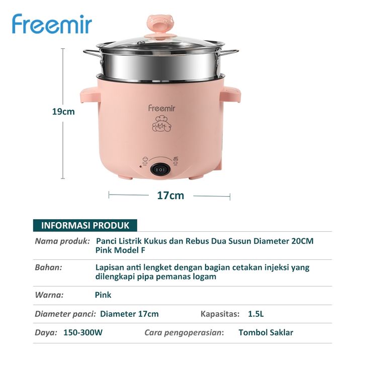 [PAYDAY SALE] freemir Panci Listrik 17c[PAYDAm Kapasitas 1.5L Daya Rendah Electric Pot Kos/Rumah Tangga KUALITAS PREMIUM