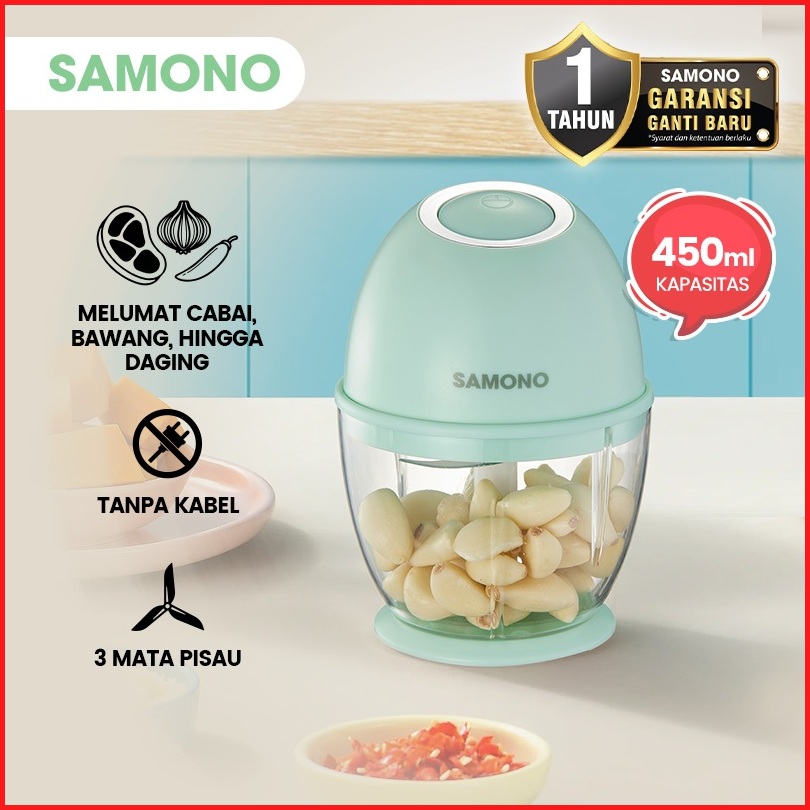 Samono Chopper Bumbu Portable Menghaluskan Bumbu Daging Makanan Kapasitas 450ml Garansi Ganti Baru 1 Tahun Sw-l6
