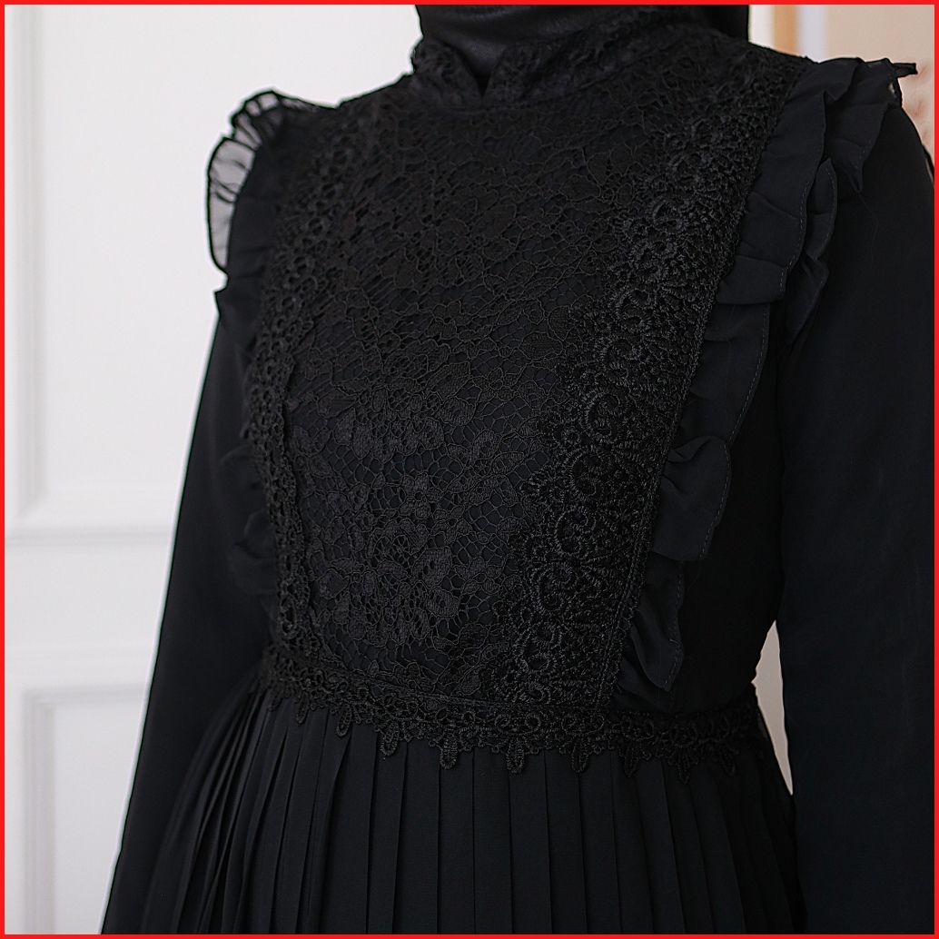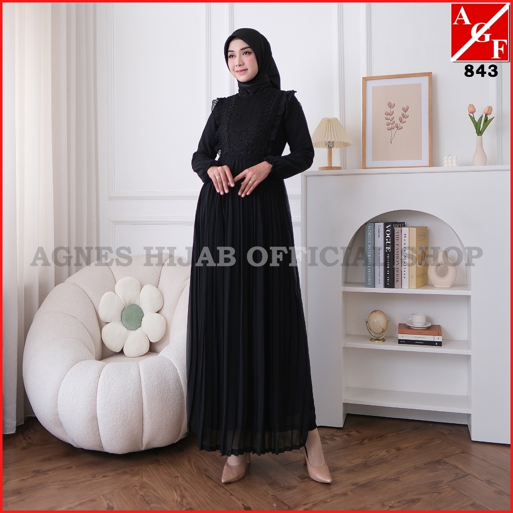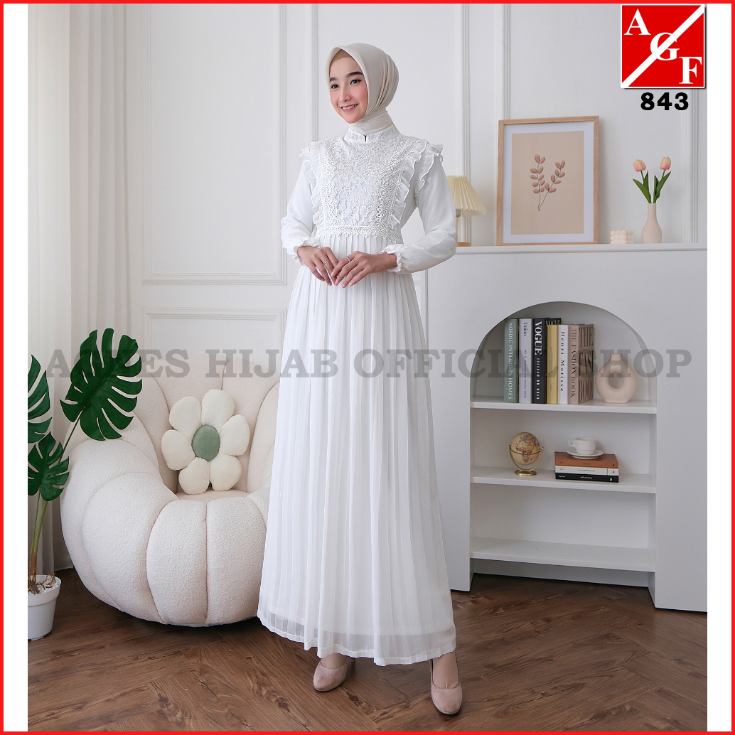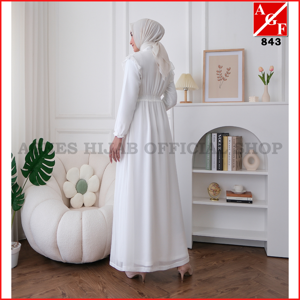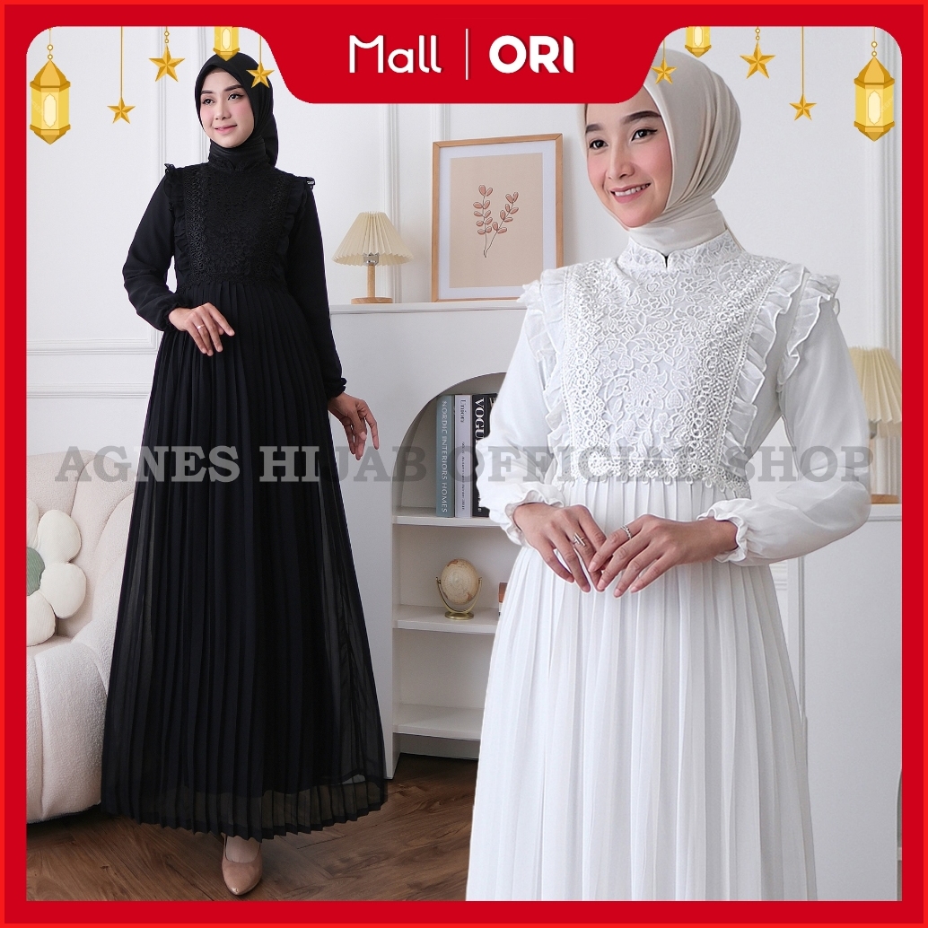 Agnes Hijab - Syafa Dress Gamis Putih Baju Muslim Wanita Dewasa Abaya Hitam Gaun Pesta Kondangan Lebaran Haji Umroh Terb