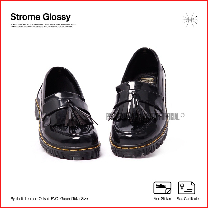 Voyagstuffofficial - Strome Sepatu Penny Loafers Pria Blackglos
