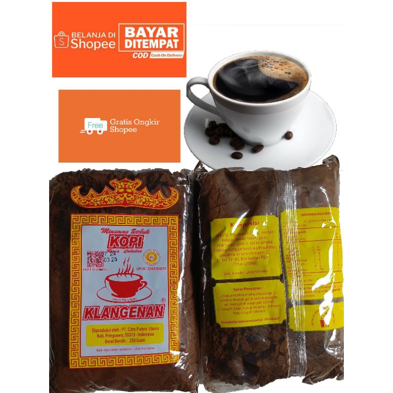 Kopi Klangenan Asli Pringsewu Lampung Kemasan 250 Gram - Kopi Bubuk Lampung (Gratis packing kardus) Kopi bubuk Robusta L