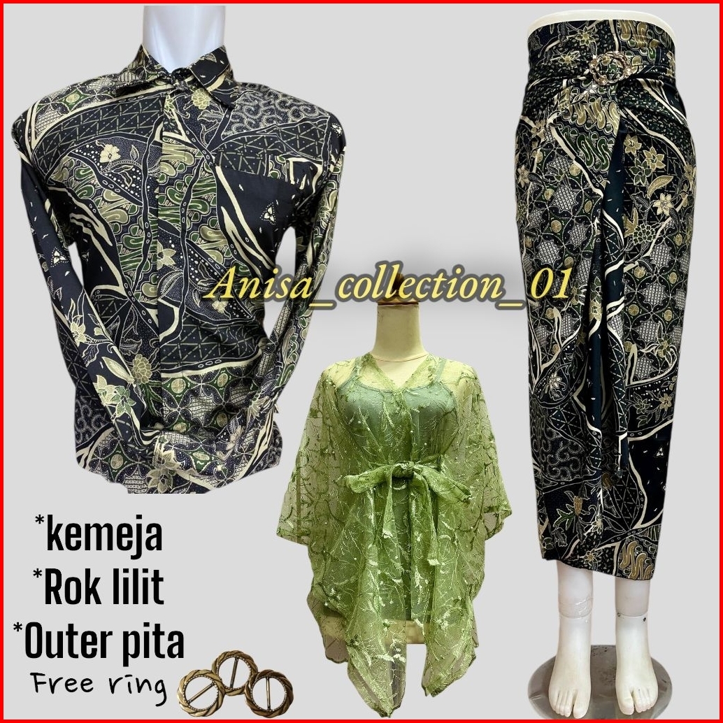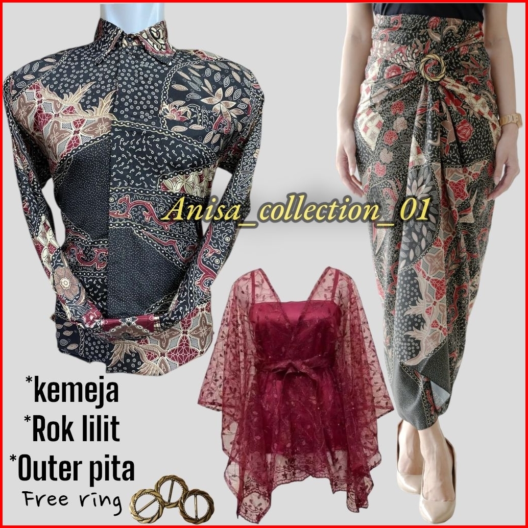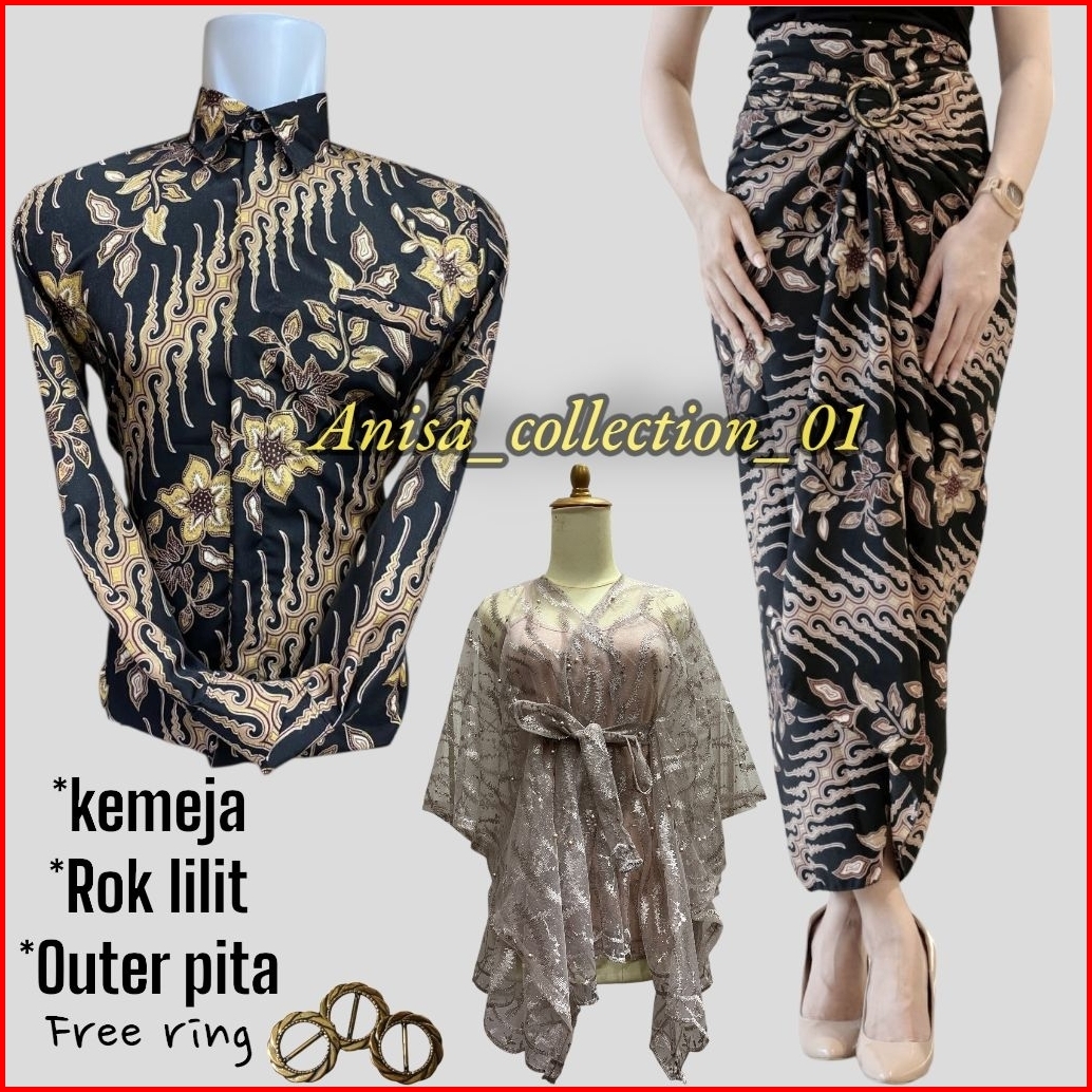 Couple Kemeja Batik Pria Rok Lilit Dan Outer Pita Couple Kemeja Lengan Panjang Batik Terbaru 2024