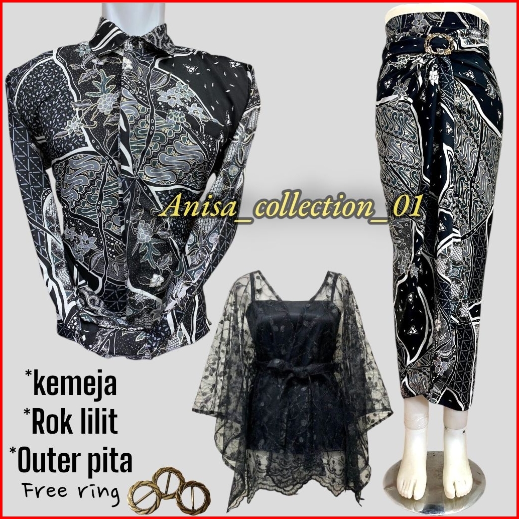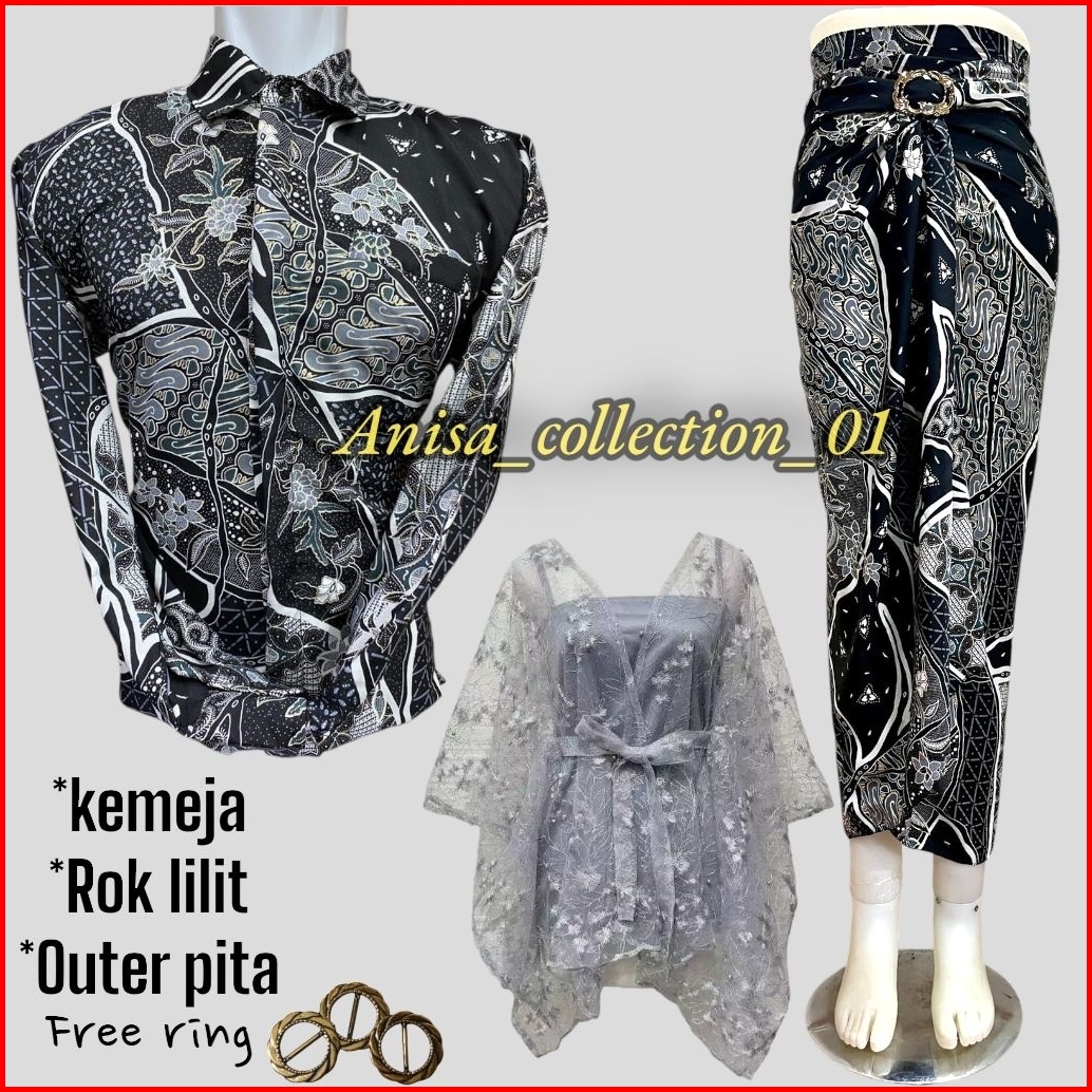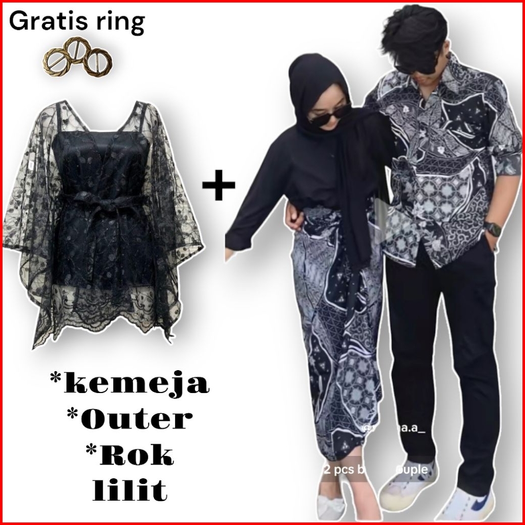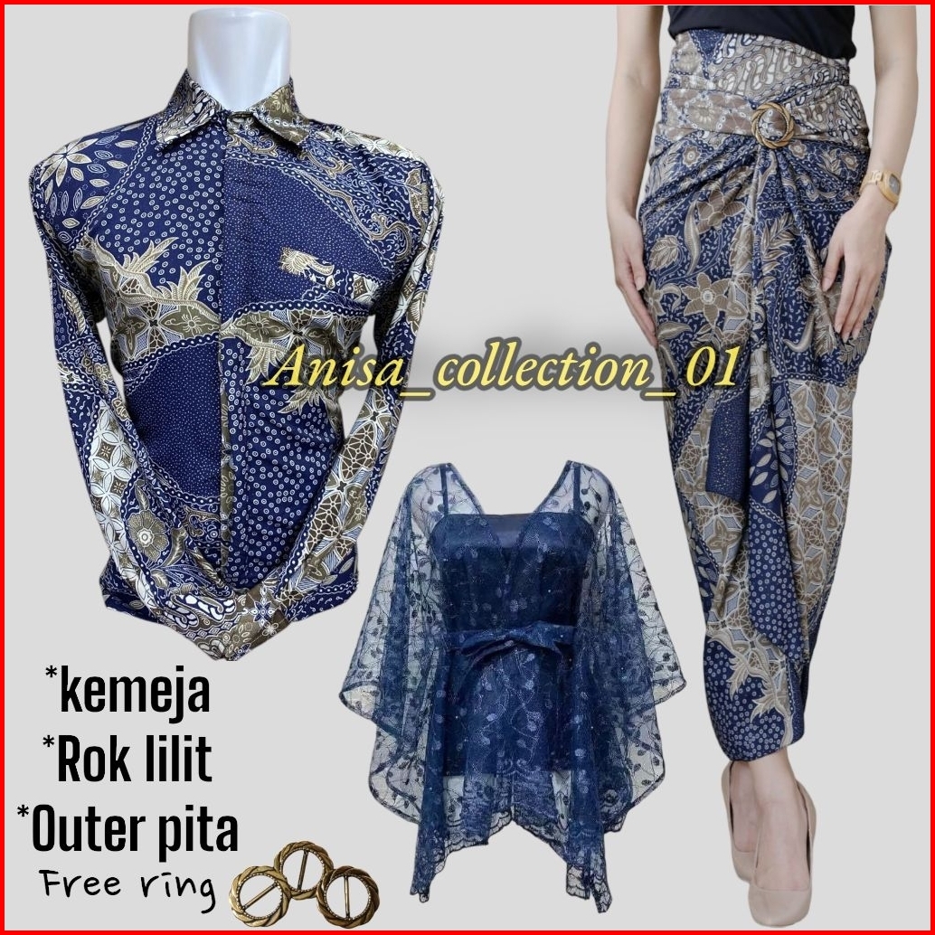 Couple Kemeja Batik Pria Rok Lilit Dan Outer Pita Couple Kemeja Lengan Panjang Batik Terbaru 2024