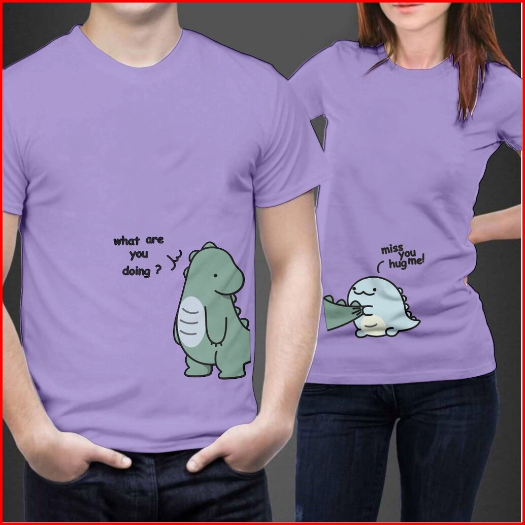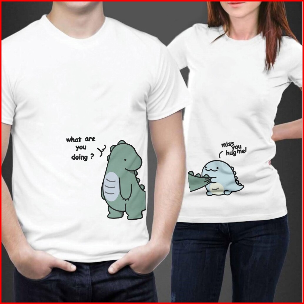 Kaos Couple Kaos Pasangan Print Dino Hug T-shirt