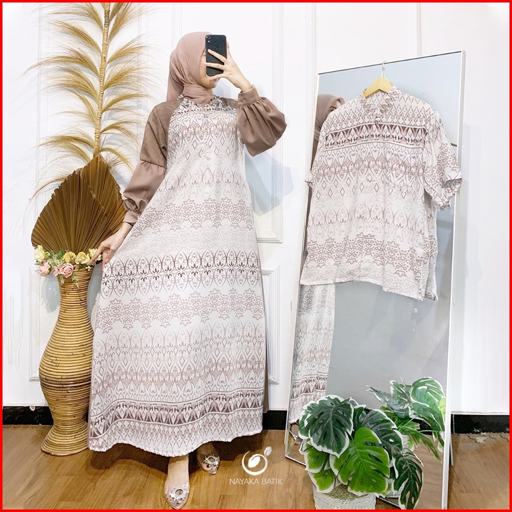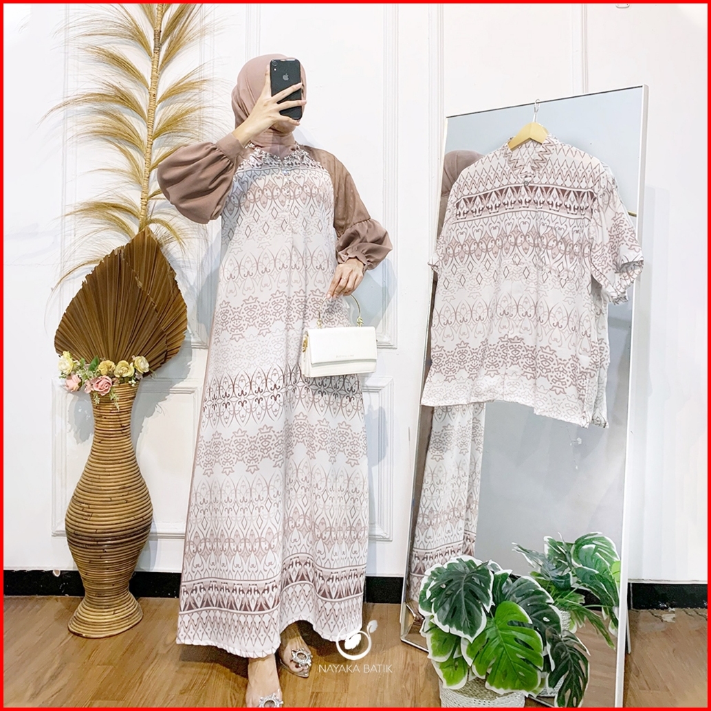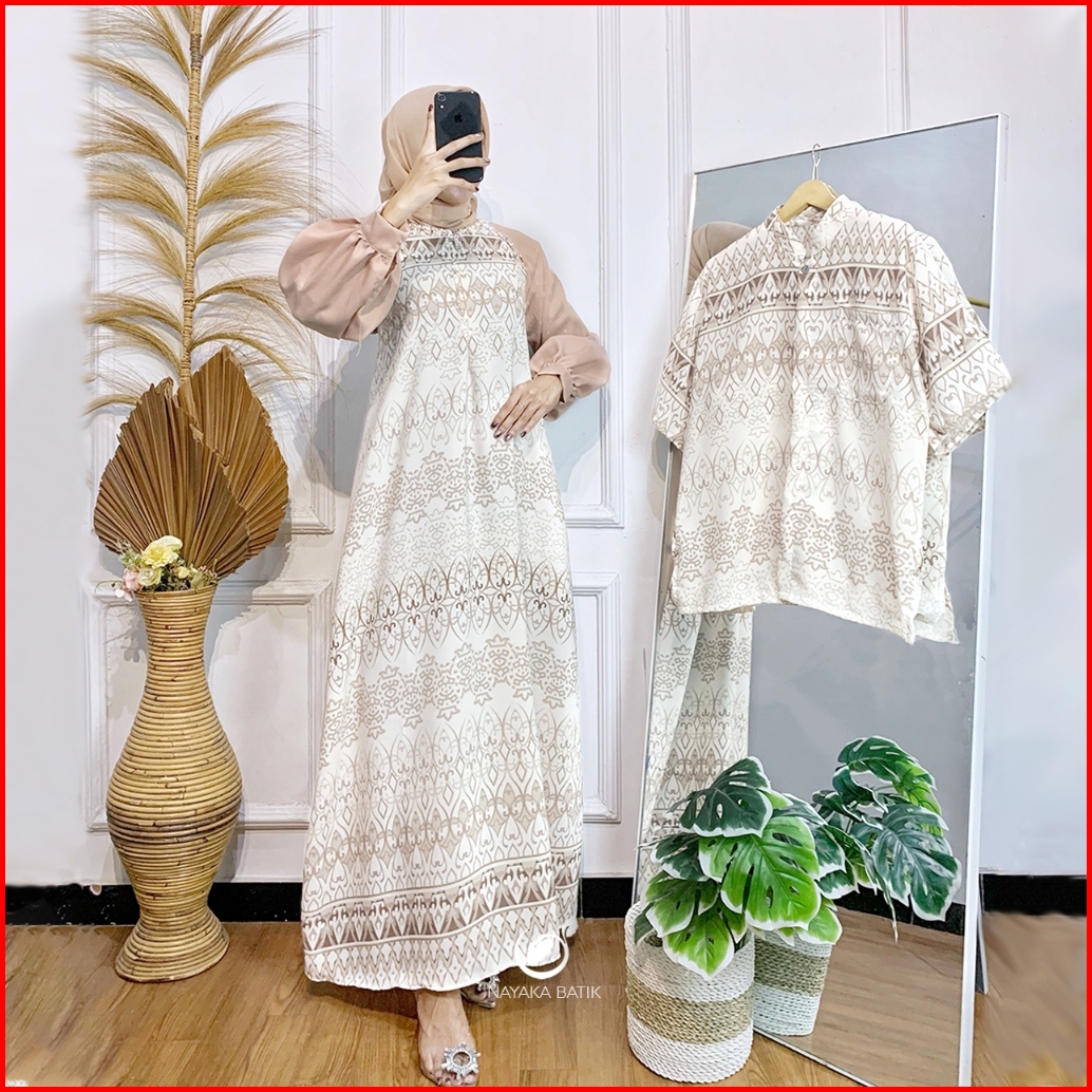 Busui Friendly New Arrival Nayaka Batik - Couple Gamis Zahwa Spesial Baju Lebaran 2025 Dress Wanita Busui Friendly Sarim