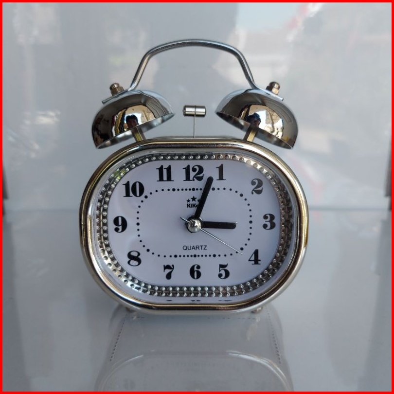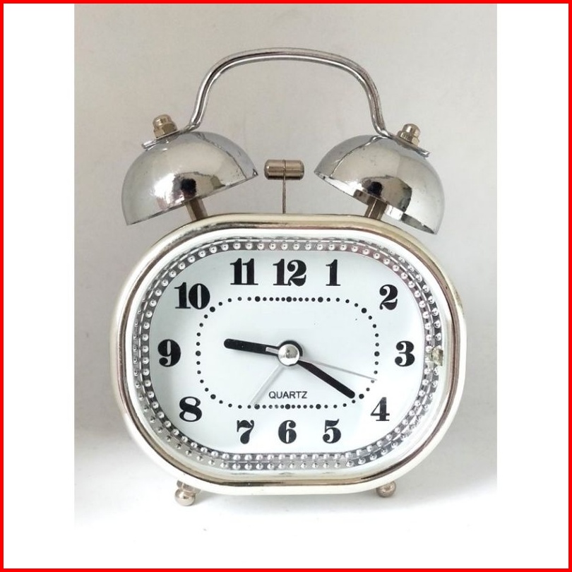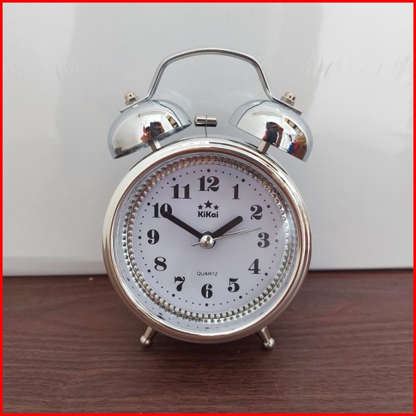 Jam Weker Alarm Jam Beker Besi Silver Kring Jam Meja Alarm Bonus Baterai
