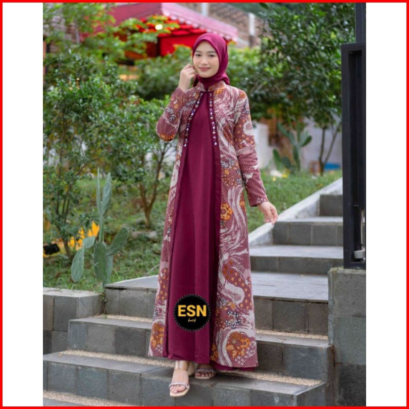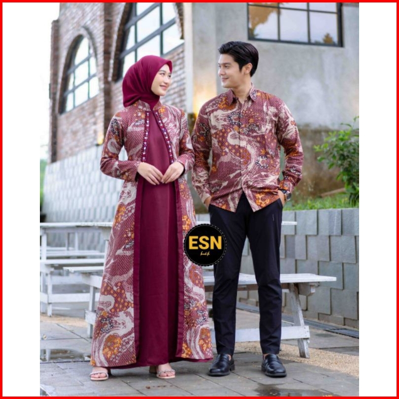 Couple Gamis Alisia Couple Sarimbit Pasangan Couple Batik Moder Couple Sarimbit Keluarga Couple Lebaran Tahun 2025