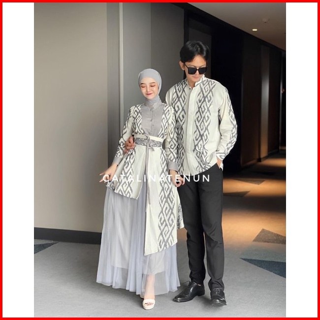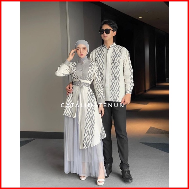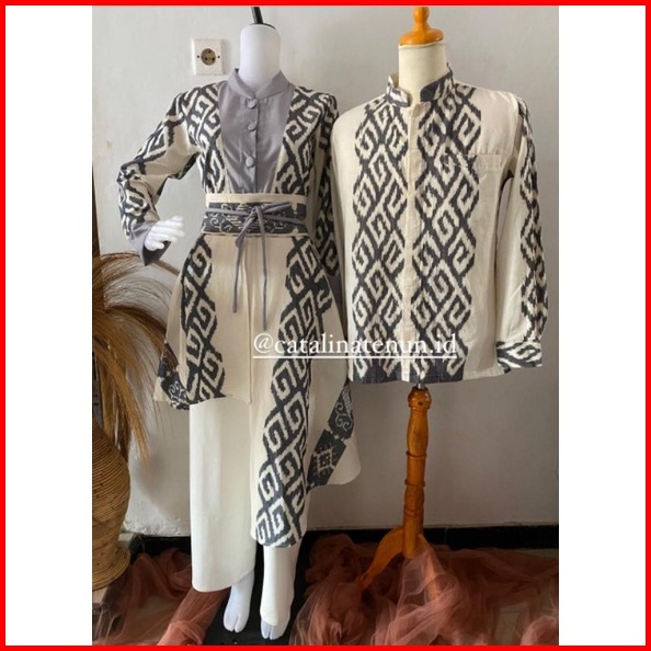 Ready Stock Baju Tenun Couple Tunik Marwa X Kemeja White-grey