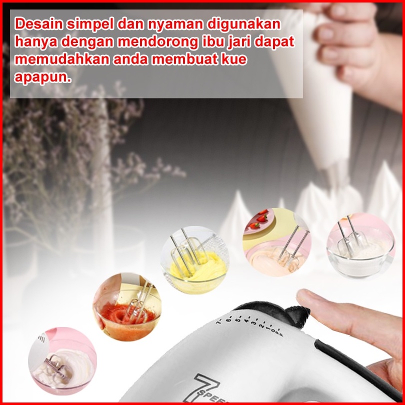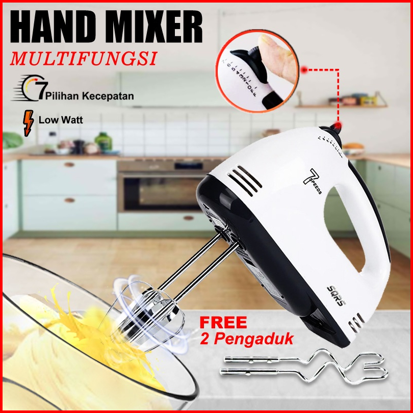 Ms Hand Mixer Elektrik 7 Speed Alat Pengaduk Otomatis Alat Pengocok Telur Free 2 Alat Pengaduk