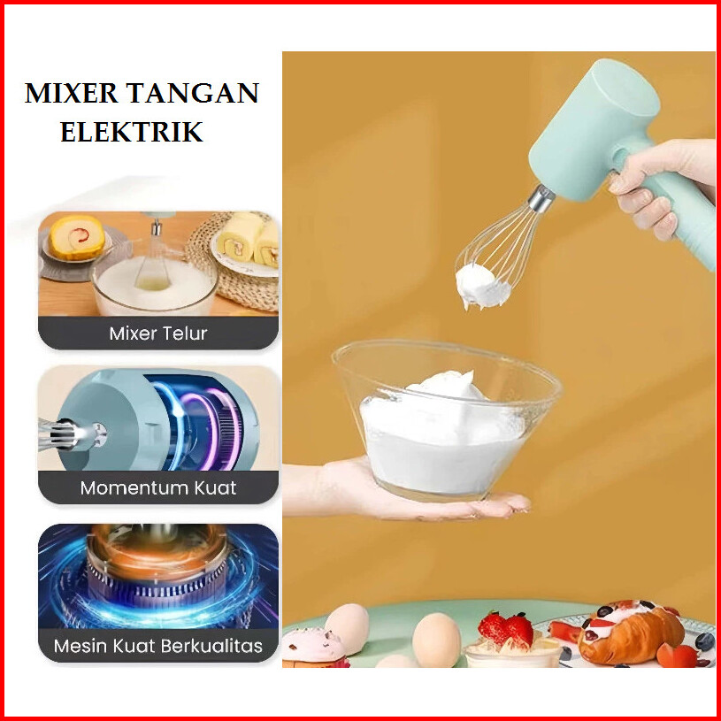 Mixer Mini 3 Kecepatan Yang Dapat Diatur Mixer Tangan Tanpa Kabel Mixer Adonan Kue Elektrik