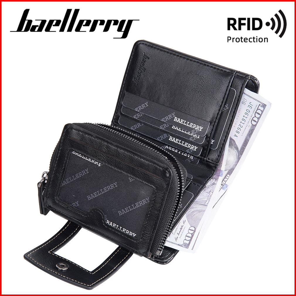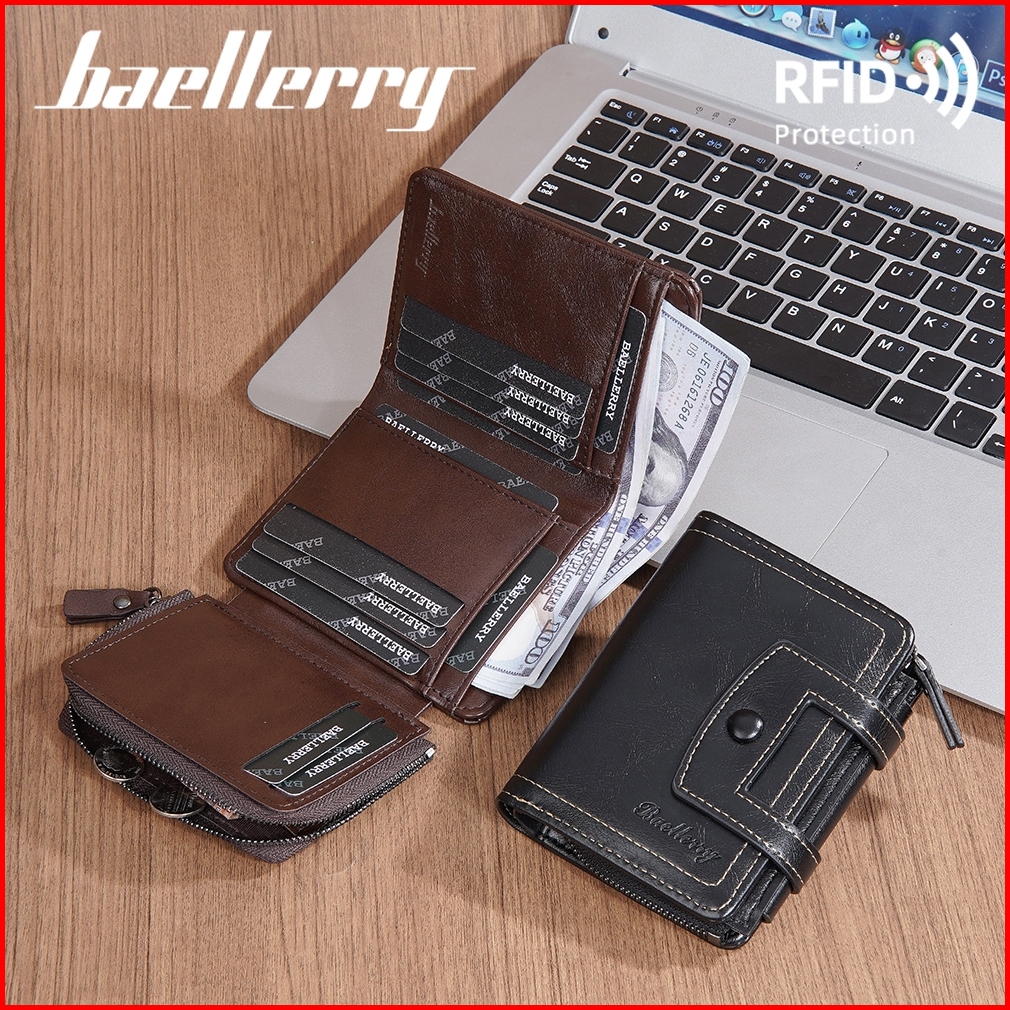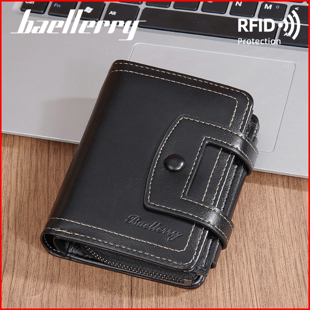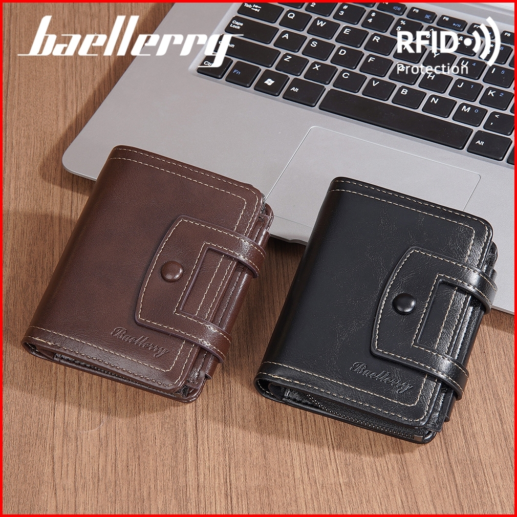 Baellerry D5112 Dompet Pria Lipat Rfid Protect Bahan Kulit Pu Leather Premium Baeos