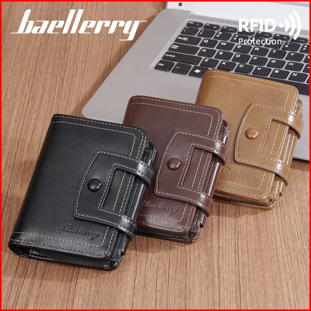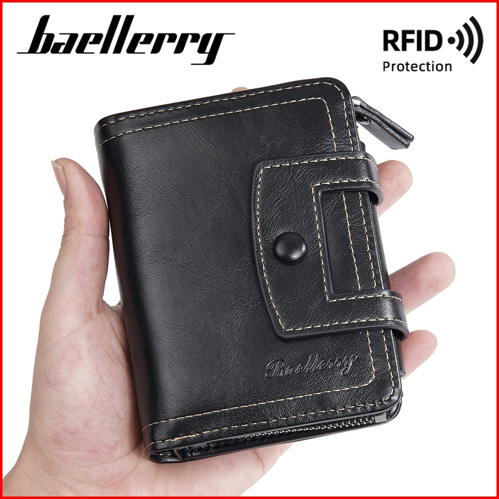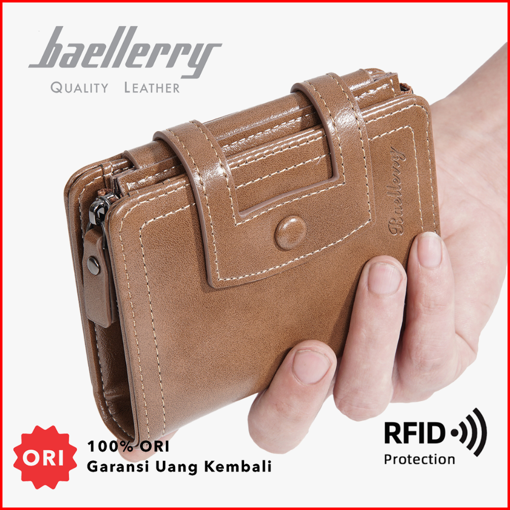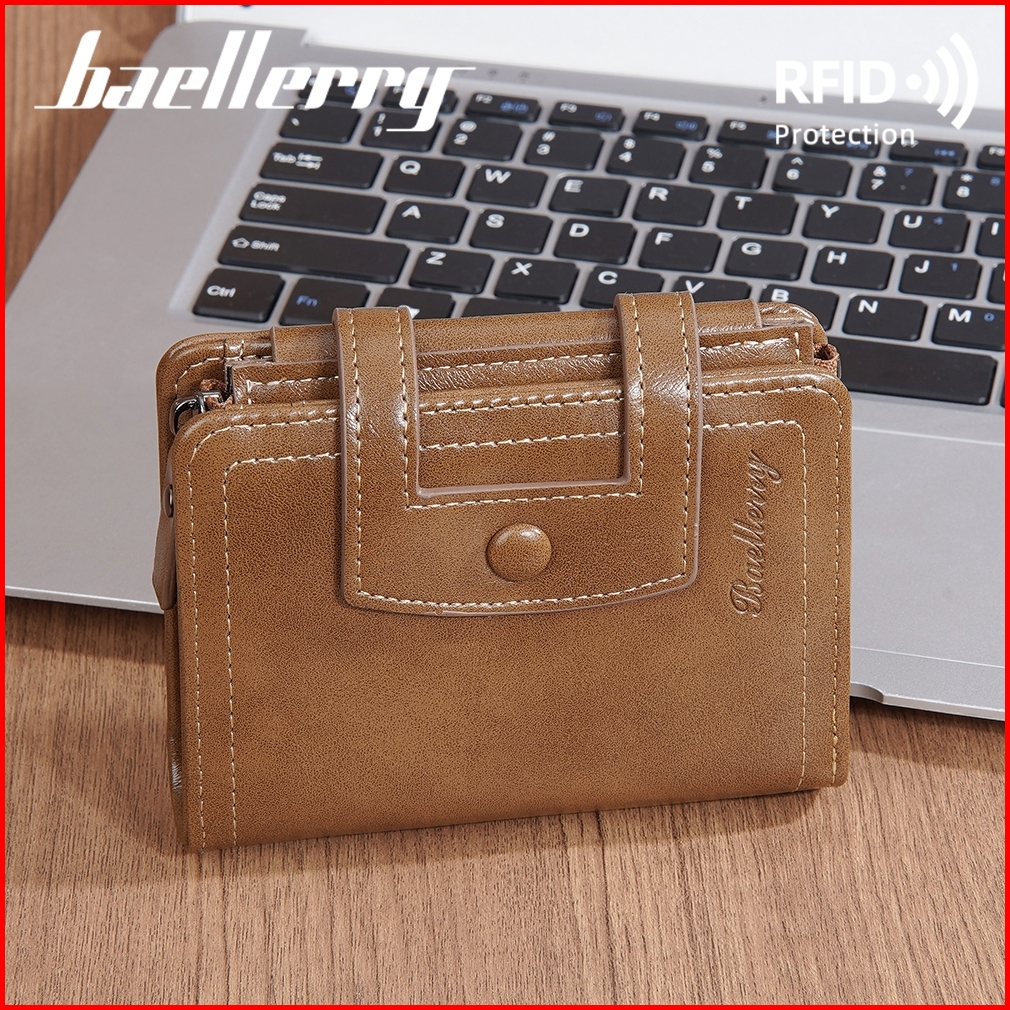 Baellerry D5112 Dompet Pria Lipat Rfid Protect Bahan Kulit Pu Leather Premium Baeos
